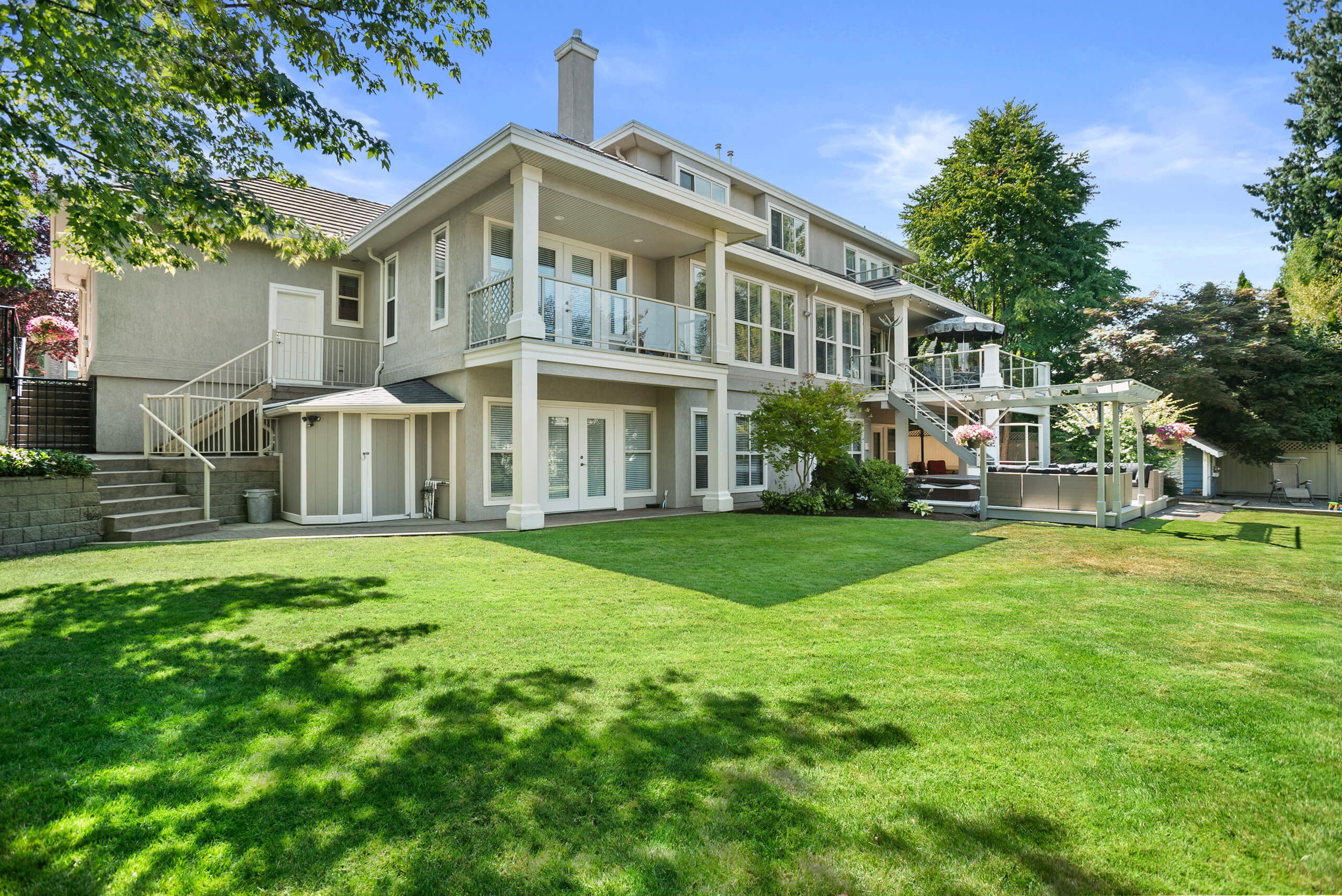 First time Offered! This beautifully designed, custom-built home offers close to 5,600 sq. ft. of spacious living spread over 3 bright floors! Enter through the front door and be greeted by a grand entry w/an open staircase & high ceilings. Spacious family/eating area, gourmet kitchen w/ loads of cabinetry, pantry & full patio! Traditional living/dining rooms up front! Plus there’s an office, laundry room, Games room/bedroom to top off the main floor. Upstairs are 4 bedrooms, 3 bathrooms, incl. a Master suite w/ large WIC, private deck, 5-piece ensuite with a separate water closet, plus a 3 sided gas F/P! The walkout basement features an office/bedroom, a large media room, natural light and a full patio. LOADS of storage space. Garden Shed. Playhouse. In-ground sprinkler. Hot Tub. Triple Garage. RV Parking. Call Now!