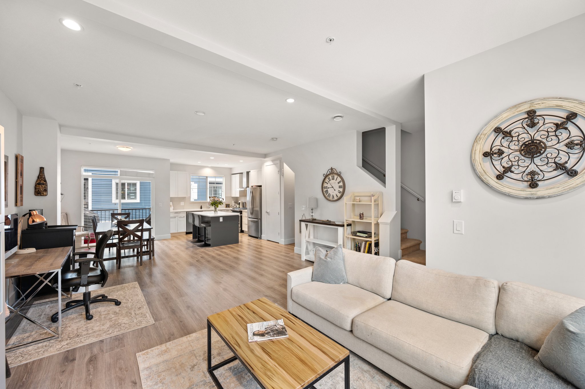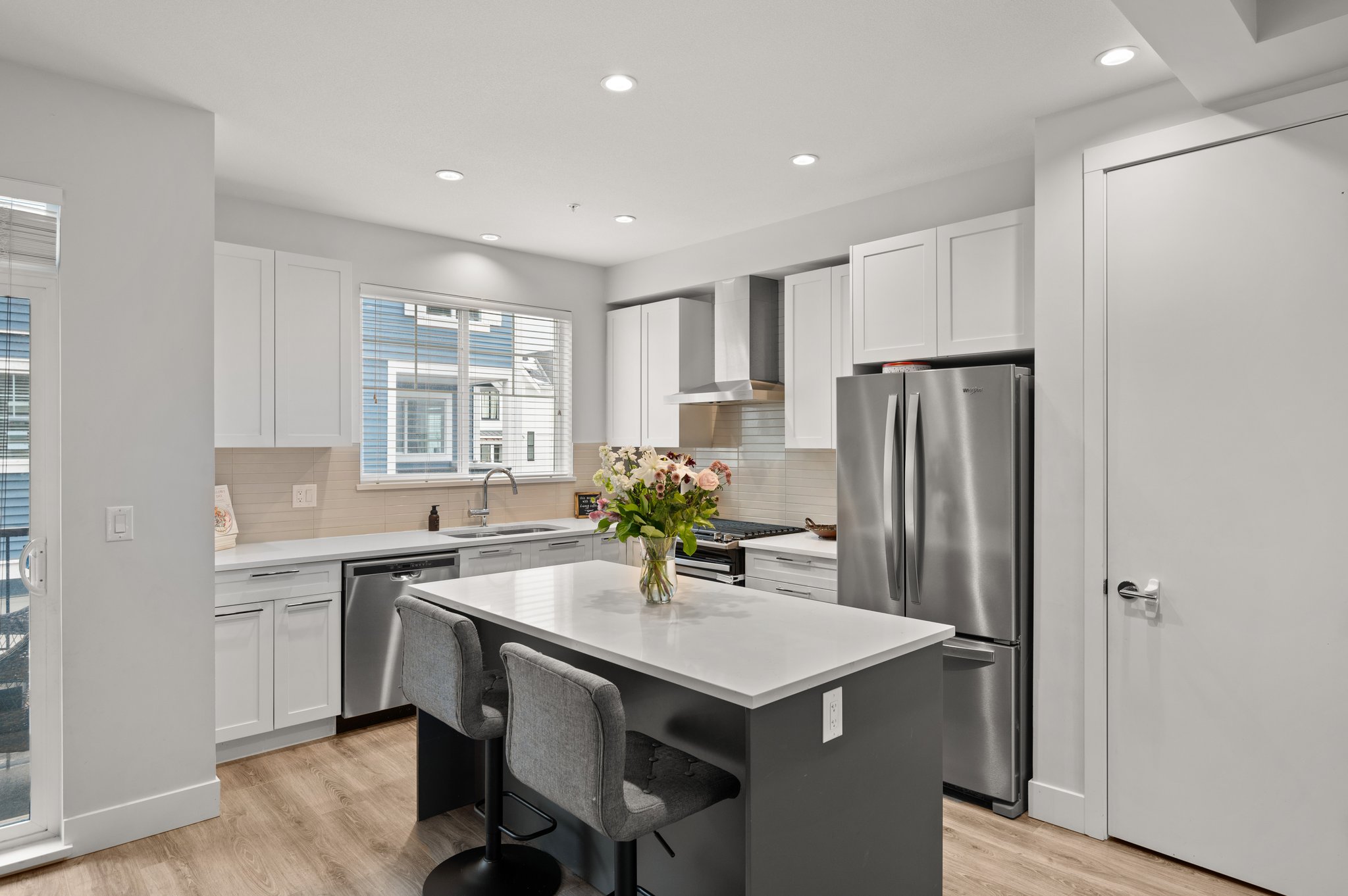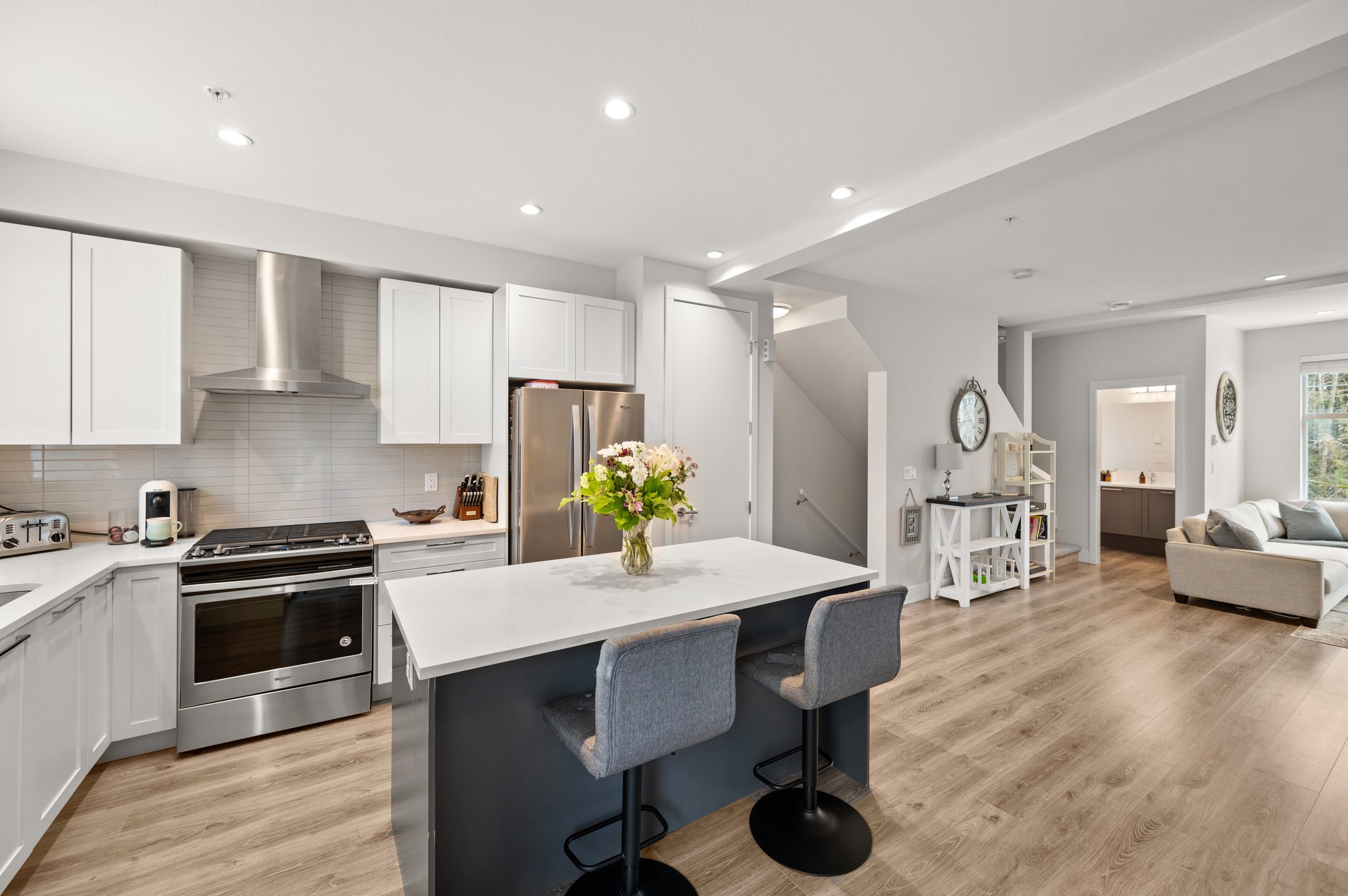 WALDEN – Modern & functional 1,726 SF, 4 bed, 3.5 bath townhome in the heart of Willoughby backing onto PROTECTED GREENSPACE! The main level offers a spacious open-concept living area featuring large windows that let in plenty of natural light. The gourmet kitchen is equipped with high end s/s appliances, gas stove, full pantry & an oversized island perfect for meal prep & entertaining guests. Upstairs you’ll find 3 large bedrooms incl. a spacious primary suite that includes a luxurious ensuite & walk in closet. Lower level offers a 4th bedrooms with full bath, providing additional privacy for teenage kids or guests. BONUS: 3 parking spaces! Double SxS garage plus 1 outdoor dedicated parking space to this unit! Parks, trails, schools, and shopping are only steps away. Shows like new!