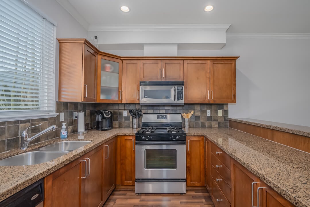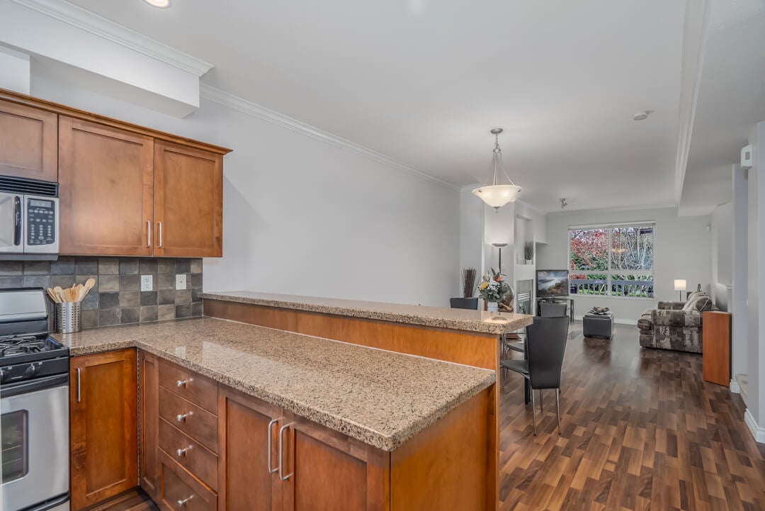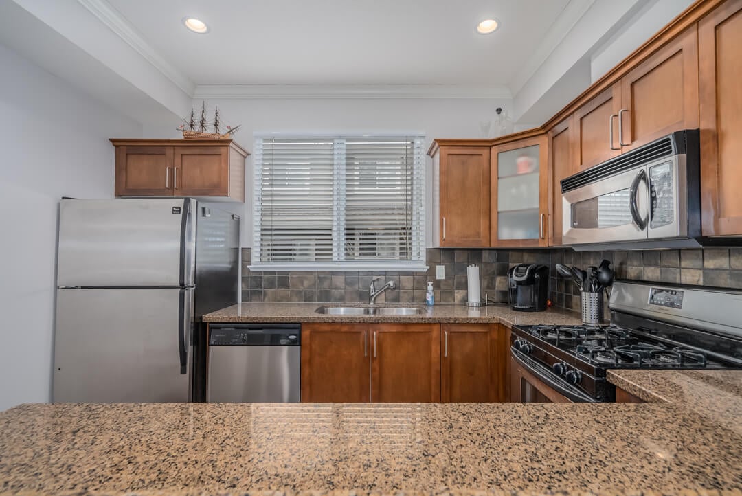 Beautifully maintained 1,231 sqft townhome in the heart of Steveston’s sought-after Riverwind complaex. This 2-bed, 2.5-bath. home offers a bright and spacious open-concept layout, complemented by 9 ft ceilings on the main floor and an abundance of natural light. The gourmet kitchen features granite countertops, stainless steel appliances, maple cabinets, a breakfast bar, and a newer cooktop. Upstairs, you’ll find two generously sized bedrooms and a convenient side-by-side washer and dryer. Recent updates include fresh interior paint and a new gas fireplace insert with a fan, adding warmth and comfort to the space. Located within the Homma Elementary and McMath Secondary school catchments, this home offers easy access to shopping, recreation, transit, and the charming Steveston Village.