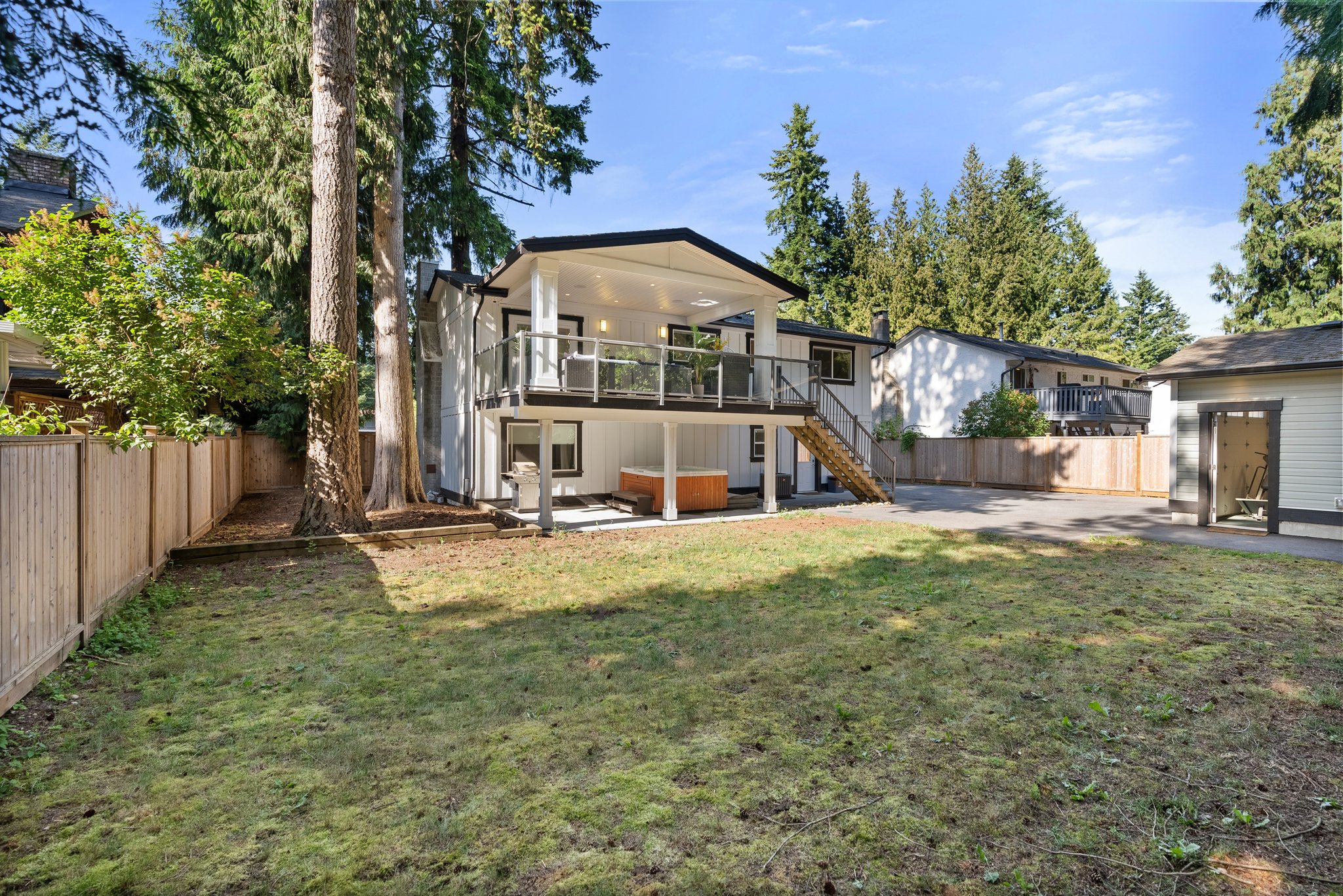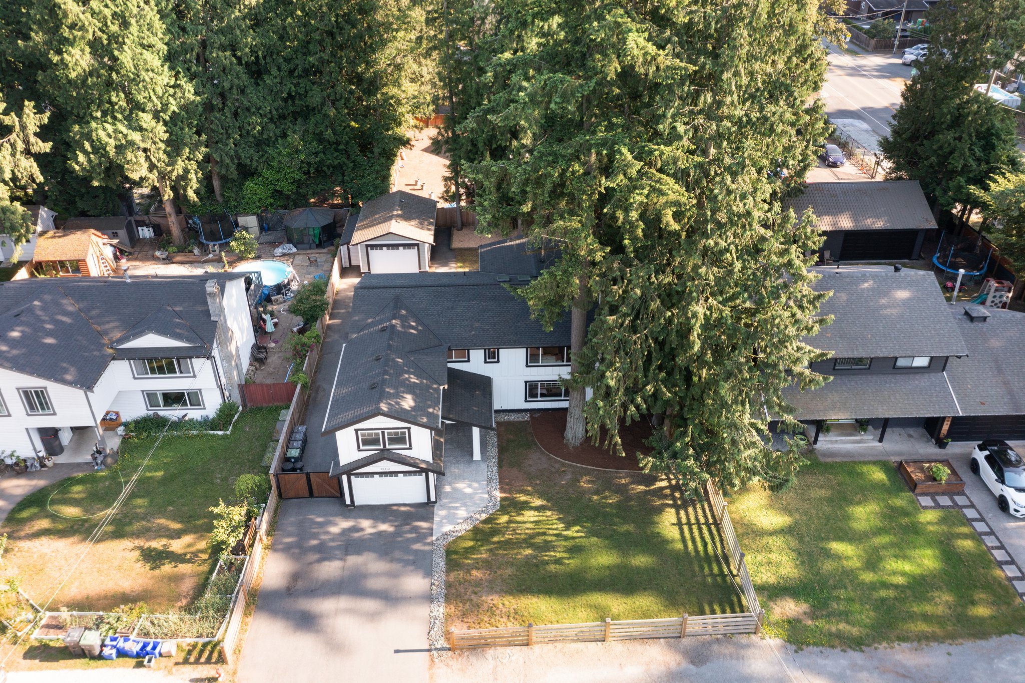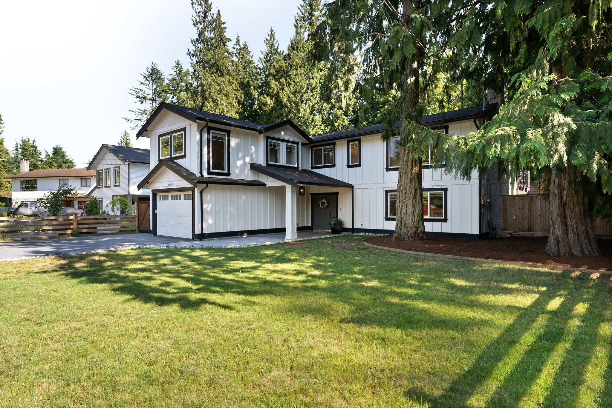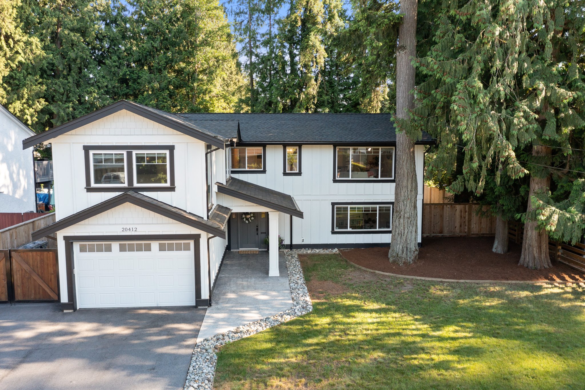 Welcome Home to Brookswood luxury! This must see home has been substantially renovated and added on to, creating the perfect family house in a very family friendly neighbourhood. The front loaded garage enters through to your office / flex room that offers storage and efficient desk space. The main floor features vaulted ceilings, designer lighting, quartz countertops with wood cabinetry in the kitchen, laminate flooring, surround sound wiring, large covered patio with gas line and outdoor speakers. Best of all is the primary suite! With vaulted ceilings, large walk in closet and a stunning 5 pce. ensuite, it’s the complete package! The lower level is a 1 bdrm legal suite, w/ large living space and separate laundry / mudroom. The detached 16 x 24 heated shop and side lane access are bonus!