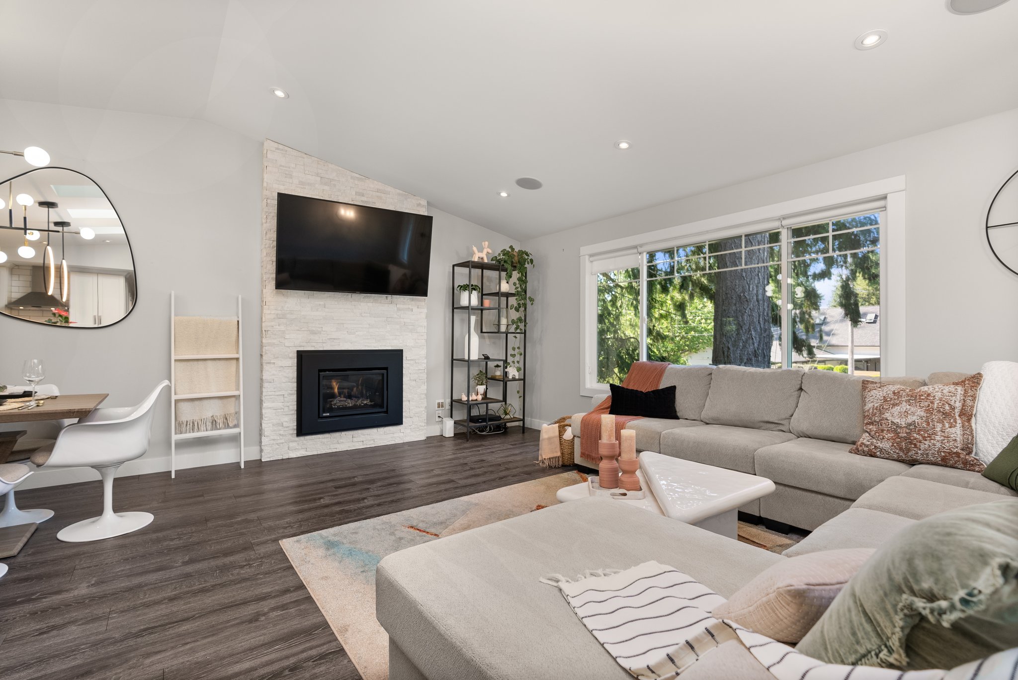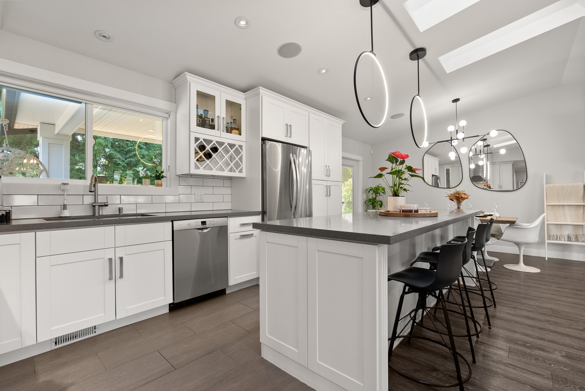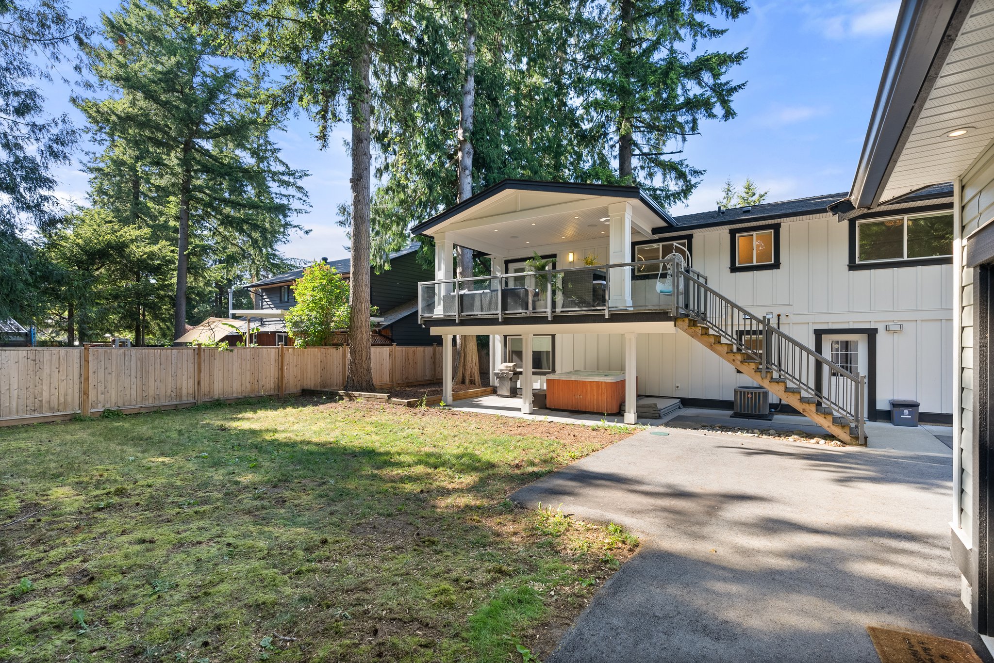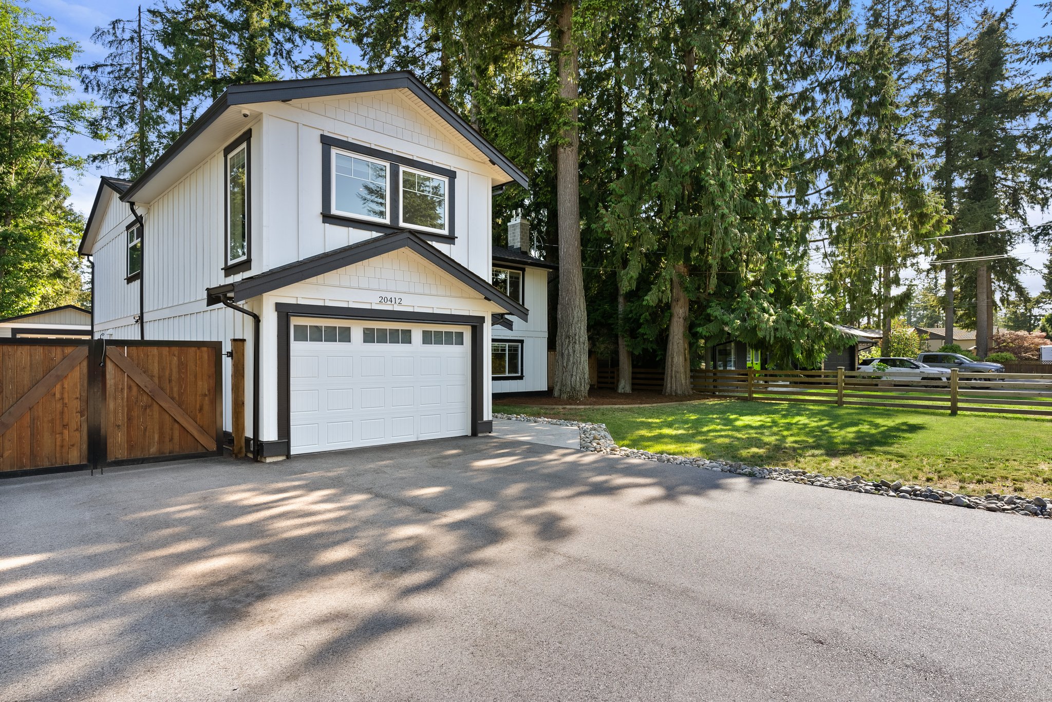 Welcome Home to Brookswood luxury! This must see home has been substantially renovated and added on to, creating the perfect family house in a very family friendly neighbourhood. The front loaded garage enters through to your office / flex room that offers storage and efficient desk space. The main floor features vaulted ceilings, designer lighting, quartz countertops with wood cabinetry in the kitchen, laminate flooring, surround sound wiring, large covered patio with gas line and outdoor speakers. Best of all is the primary suite! With vaulted ceilings, large walk in closet and a stunning 5 pce. ensuite, it’s the complete package! The lower level is a 1 bdrm legal suite, w/ large living space and separate laundry / mudroom. The detached 16 x 24 heated shop and side lane access are bonus!