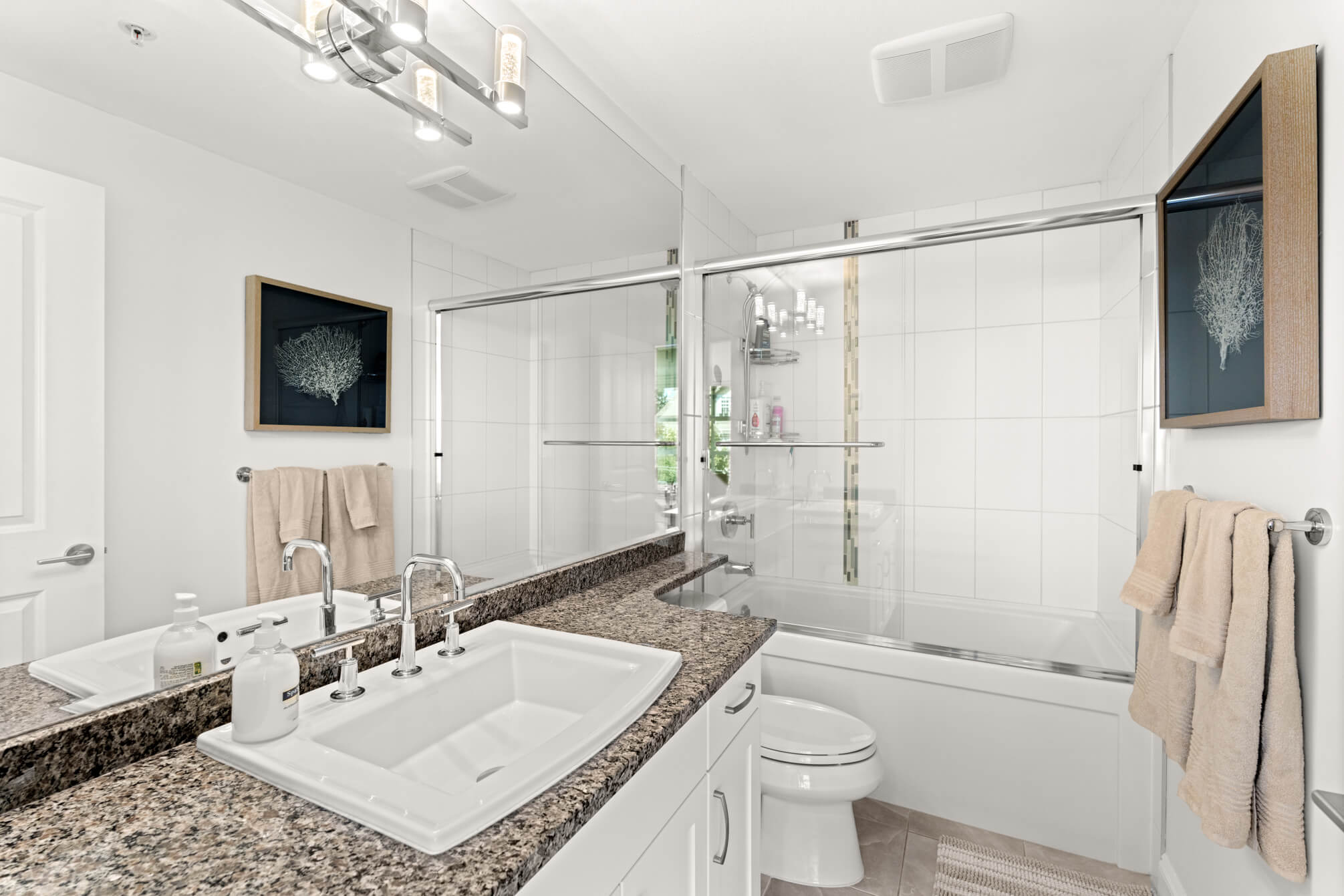 Experience upscale living at “Gemini” in the heart of South Surrey. Built in 2012 by the award-winning Genex Development Group, this bright NW-facing corner unit features 9-ft ceilings and oversized windows. The open layout includes a Sunwood kitchen with soft-close cabinets, granite counters, a window above the sink, and high-end Bosch & Fisher Paykel appliances. Enjoy hardwood floors, crown moldings, high baseboards, and a heated bathroom floor. Includes two secure underground parking spots. Stylish, spacious, and beautifully finished — this home has it all.