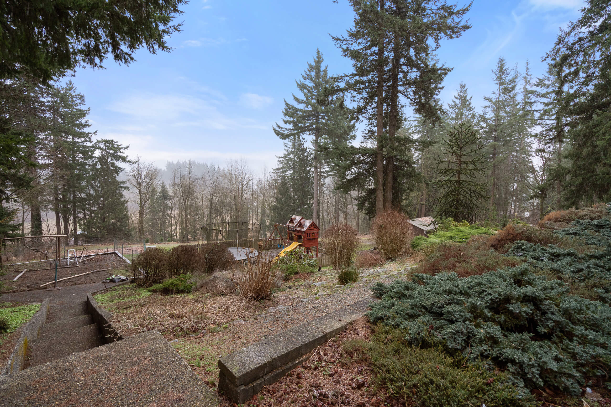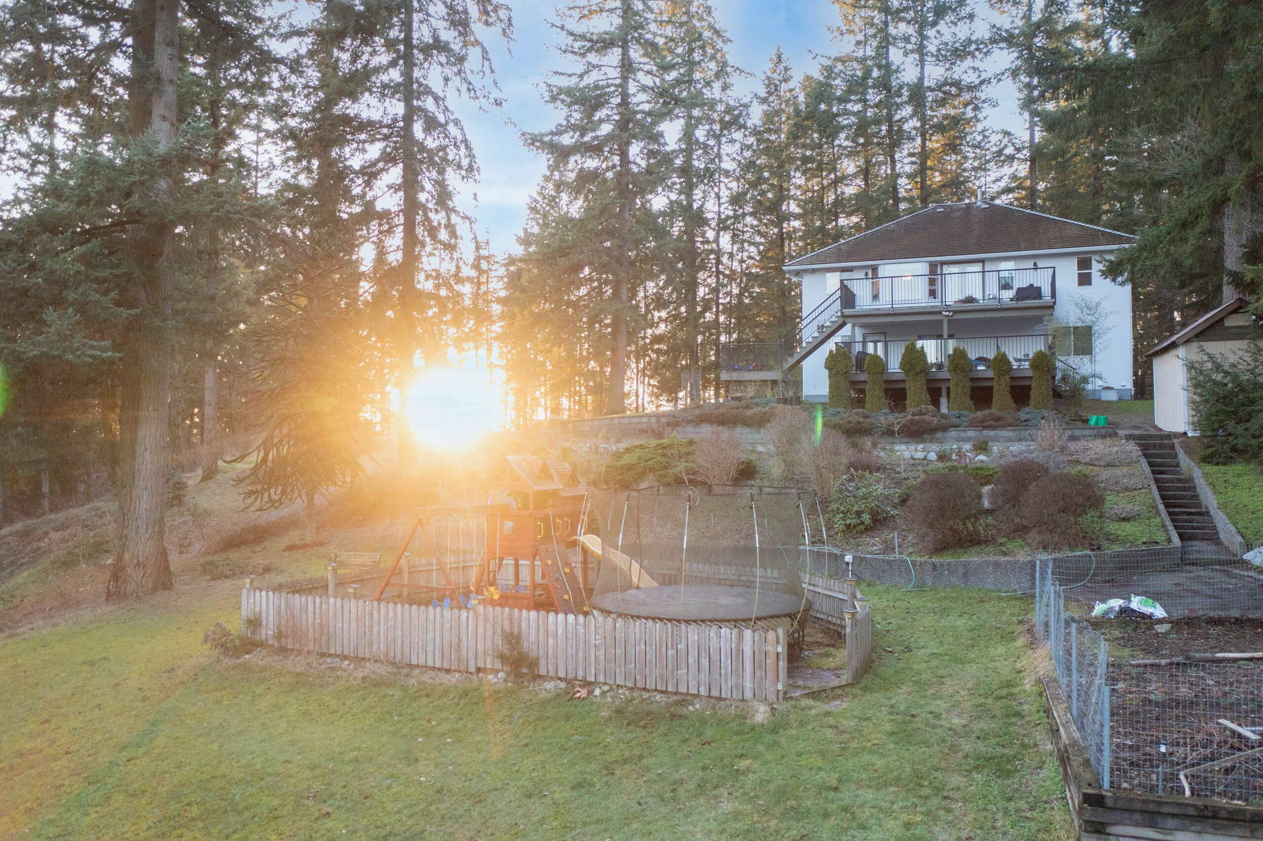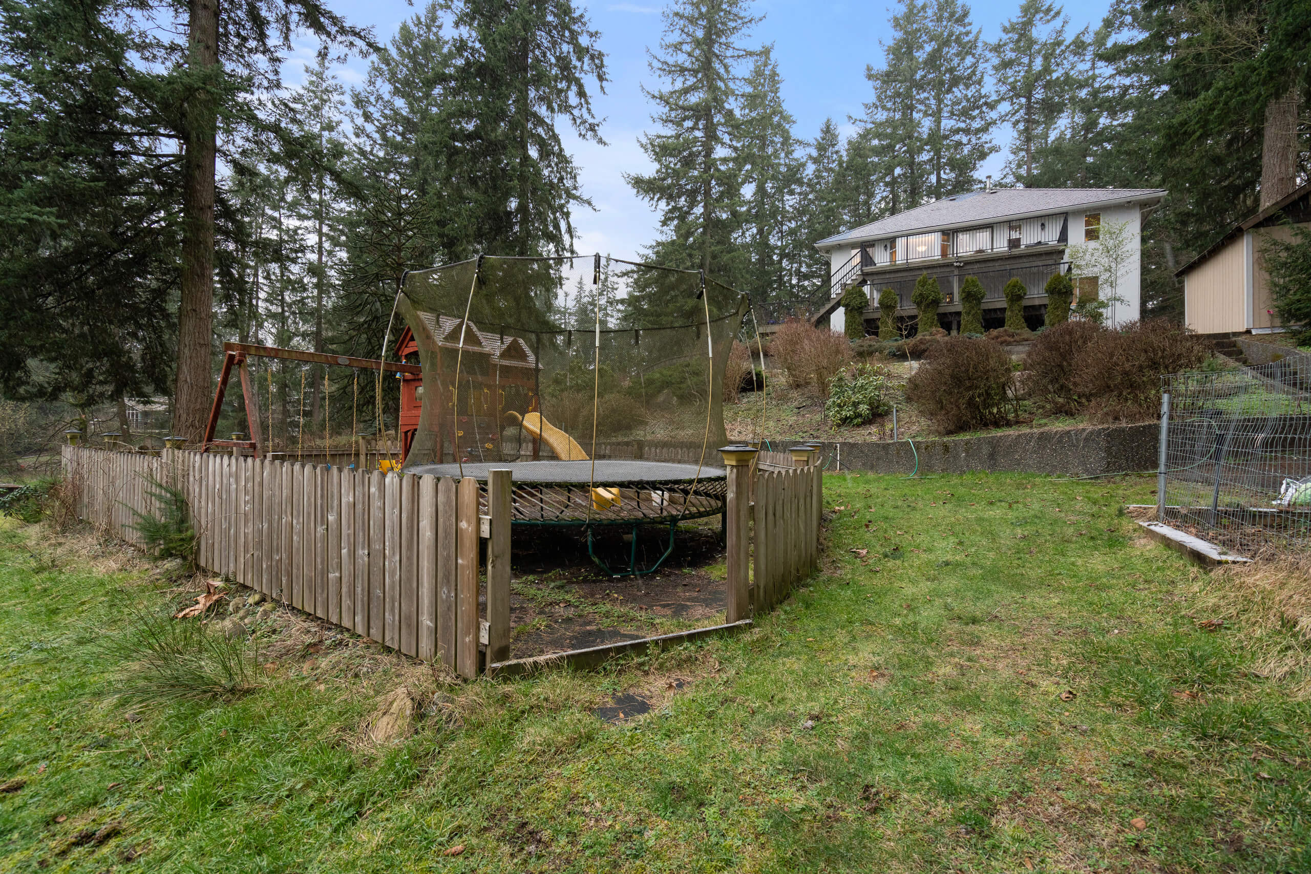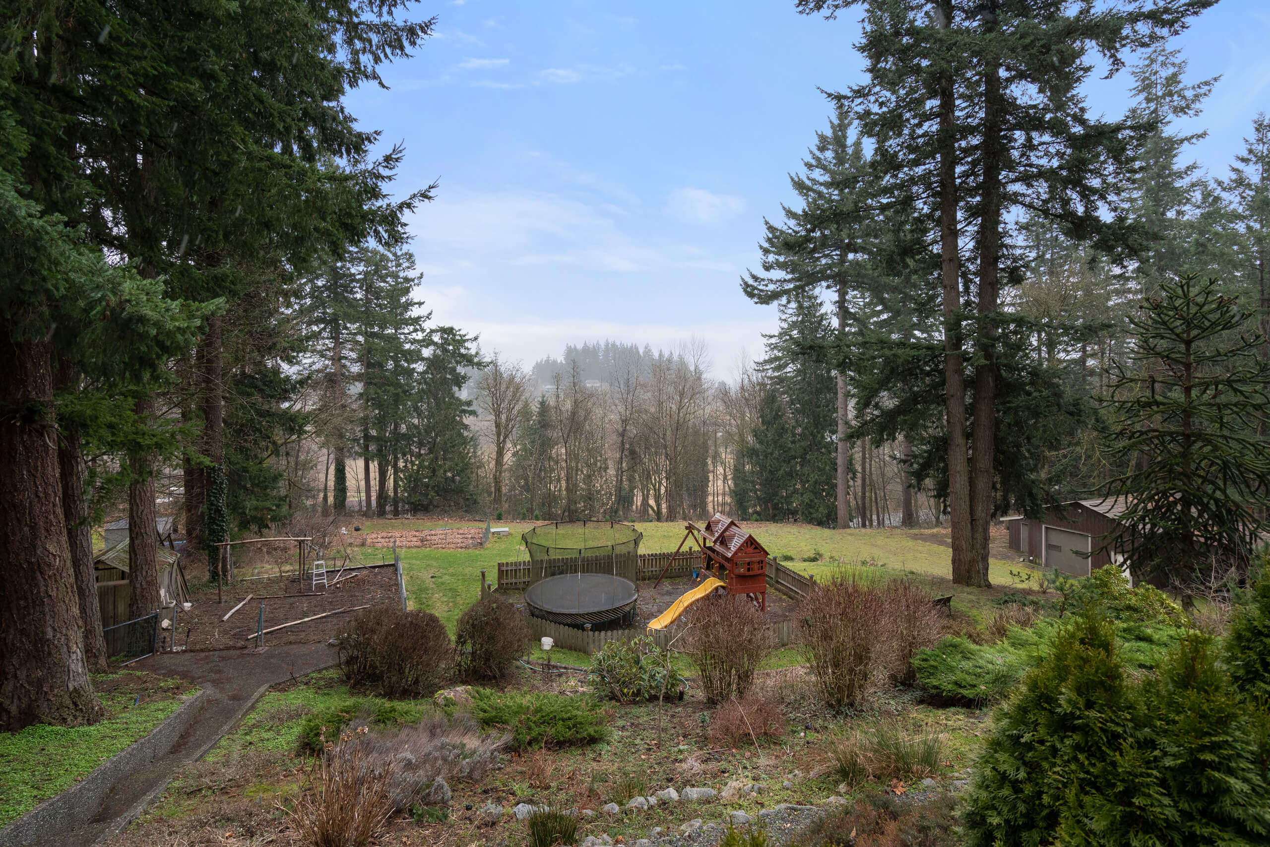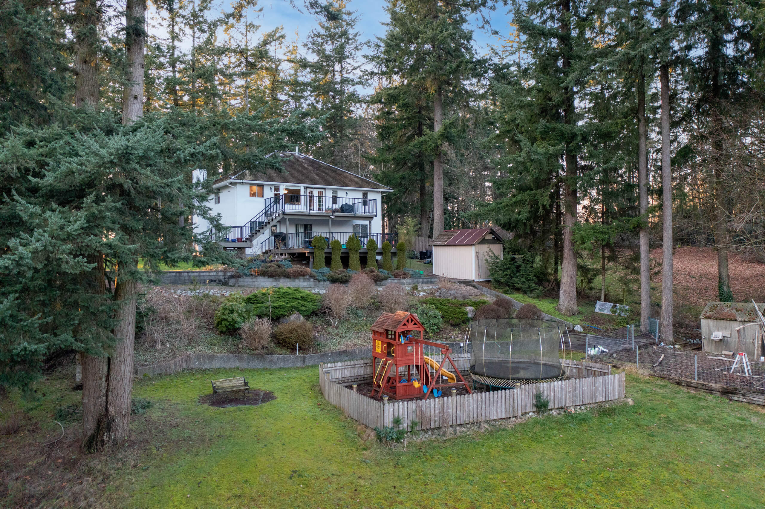 Excellent Opportunity! 1.68 Acre future development property w/ quality home strategically situated on the property. The 3 storey home features beautiful Mt. Baker & valley views from the windows & large patios. Really spacious home w/ 3 bdrms, 2 bathrooms, large living space on the top floor. The main floor has a bright living room, rec room + wet bar, w/ large office or bdrm, & full bathroom. The Basement features a kitchen, 1 bdrm / laundry & large living space, sep. entrance & lots of storage! Quality construction is portrayed through out. New HWT Tank. Forced Air heating. Irrigation system. Beautifully landscaped yard w/ gardens, playground, separate driveway to the workshop w/ 100 amp, 9’6 door plus covered space off the side. Loads of parking! This is a solid opportunity to explore!
