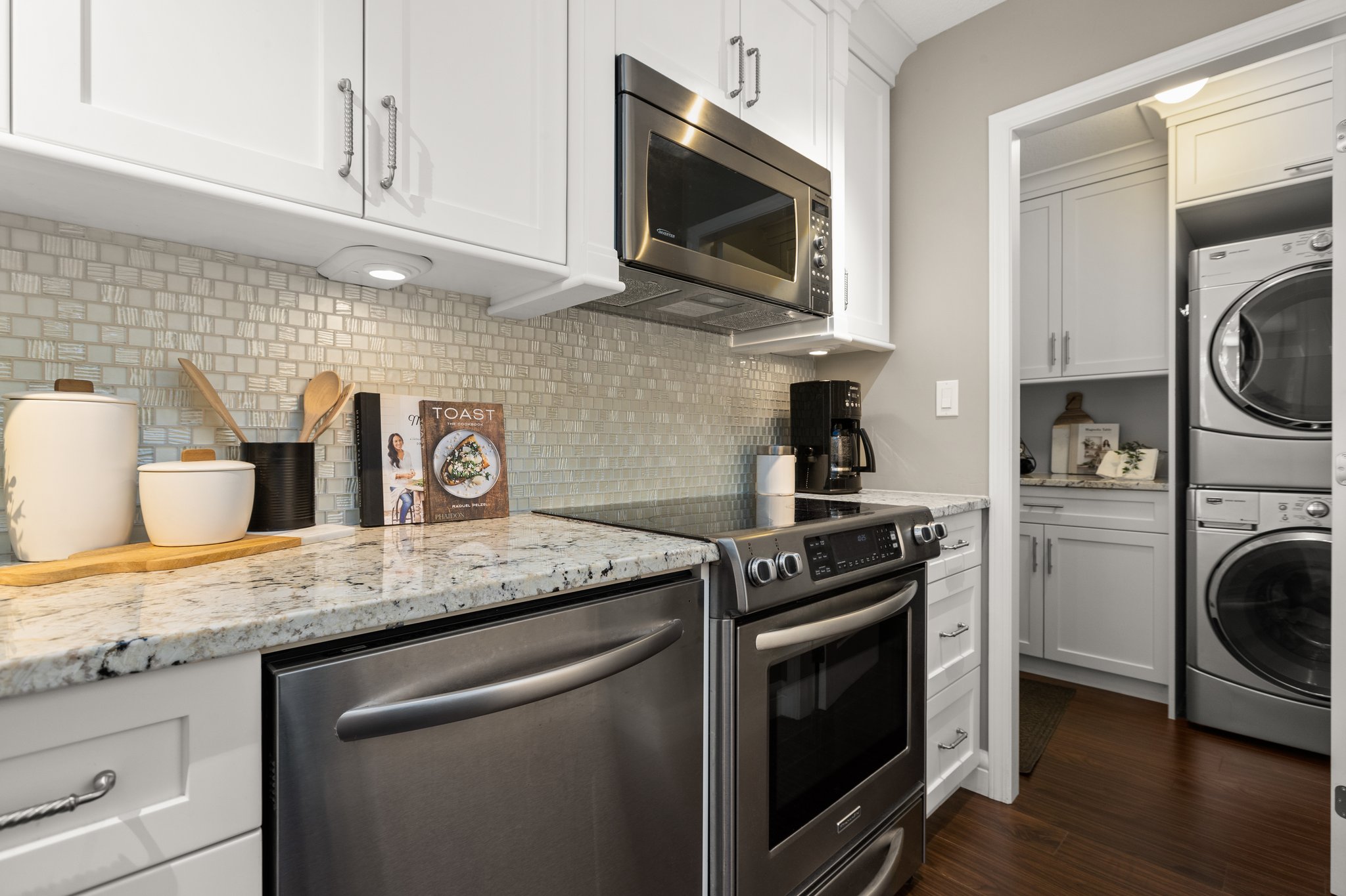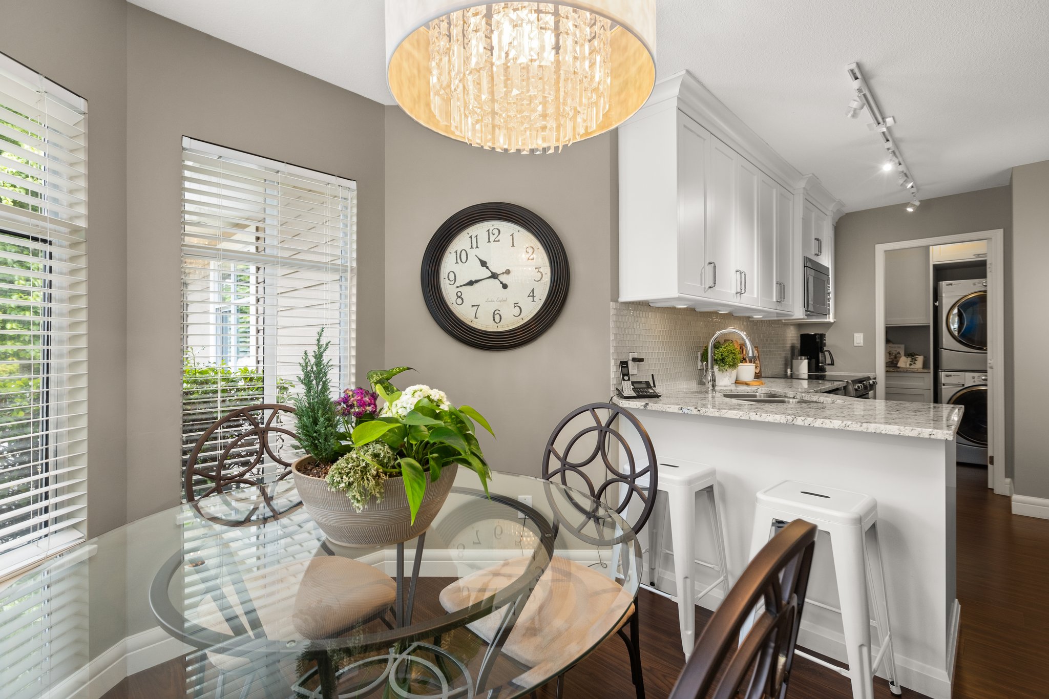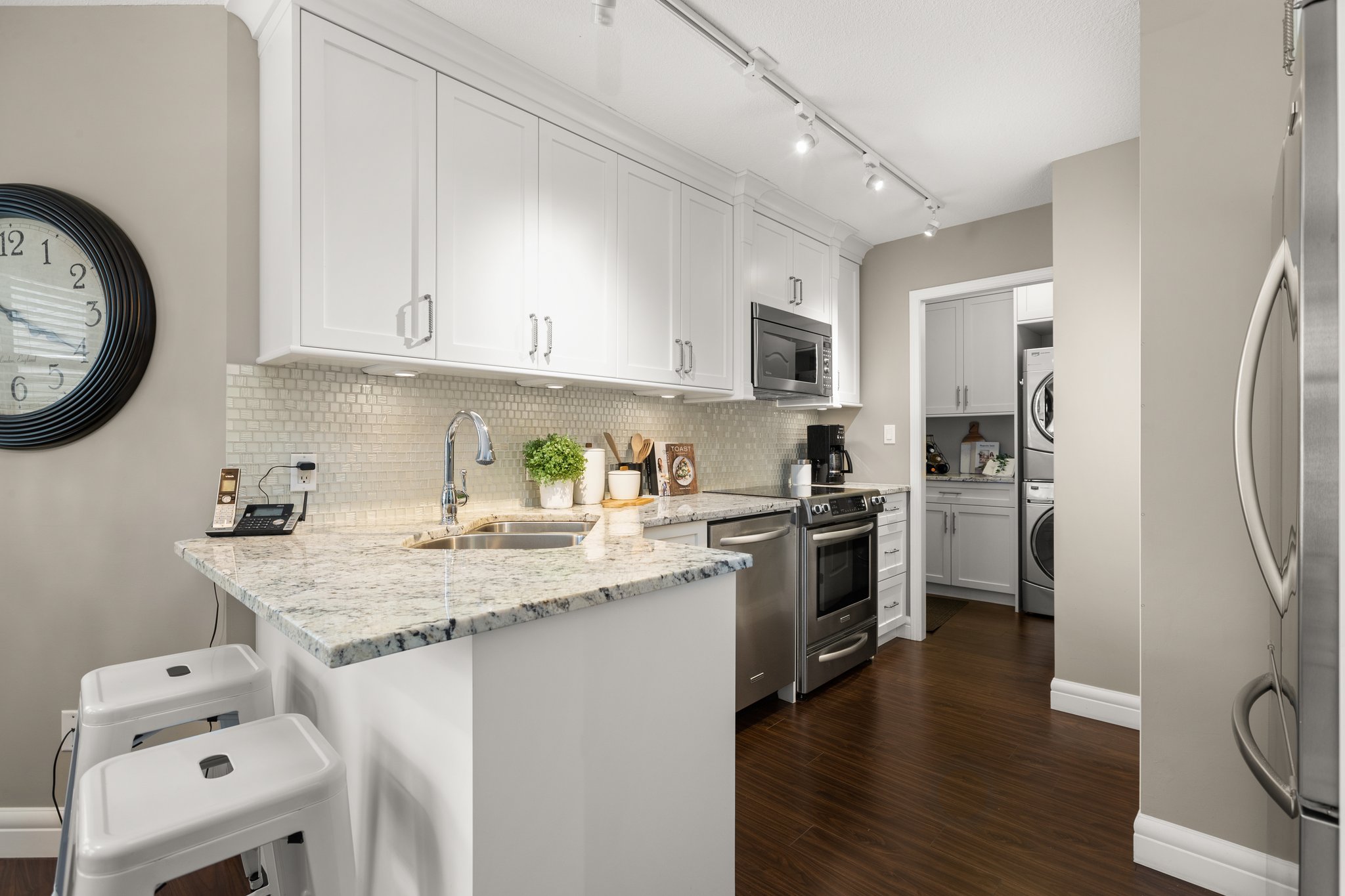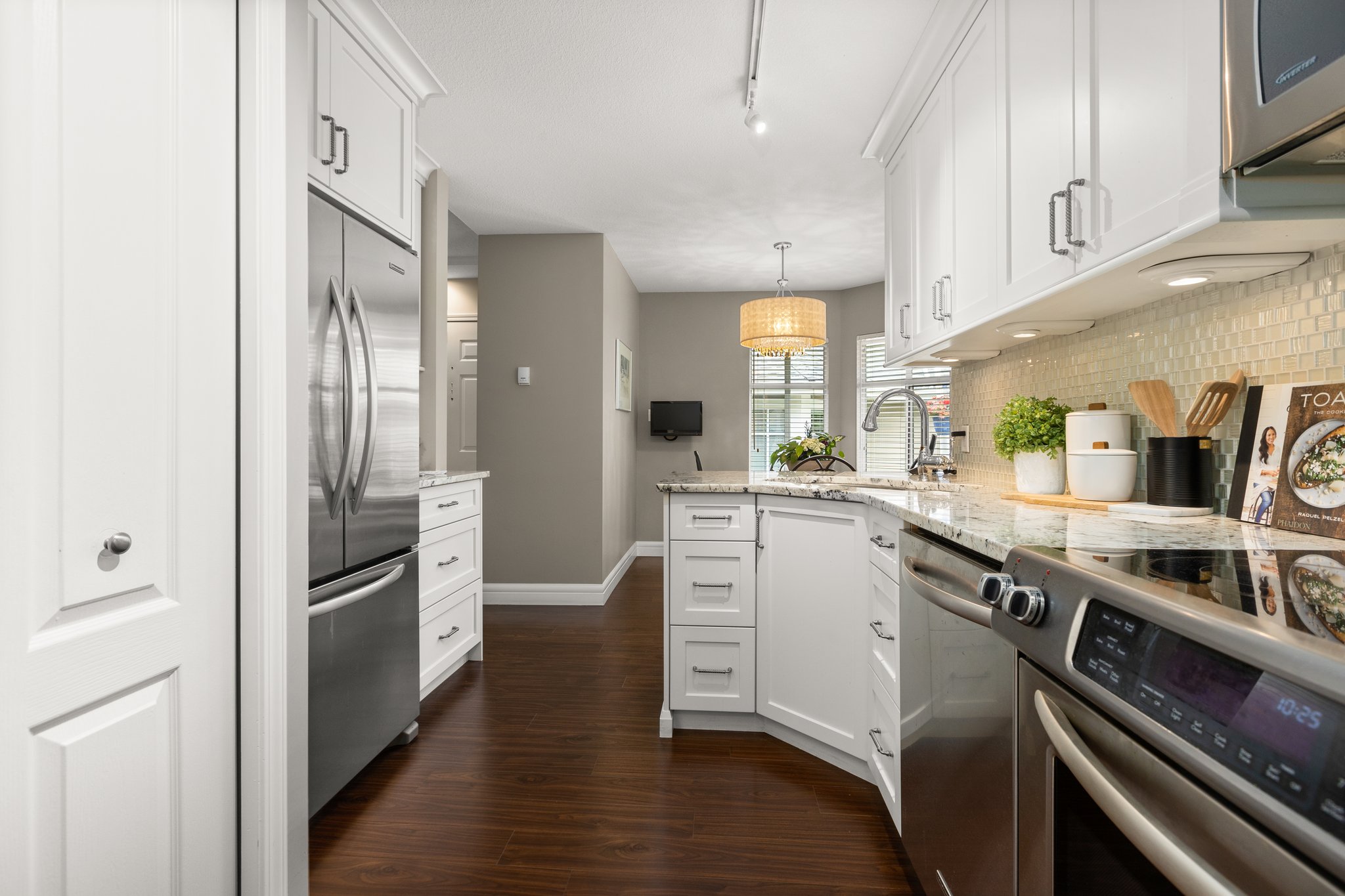 Welcome to “The Peninsula”, an exclusive gated 55+ complex in the desirable South Surrey neighborhood! Boasting a functional layout, this home features the primary bedroom conveniently located on the main floor for ultimate privacy and convenience. Upstairs, you’ll find two spacious bedrooms, ideal for family or guests, along with an open den that can be transformed into a home office or a cozy reading nook. Prepare to be amazed by the tasteful renovations, from an updated white kitchen, renovated bathrooms to radiant heat, no detail has been overlooked. The double car garage ensures ample parking and additional storage space. This home is located within walking distance to shopping, restaurants and transportation. Book your private viewing today and make this home yours!