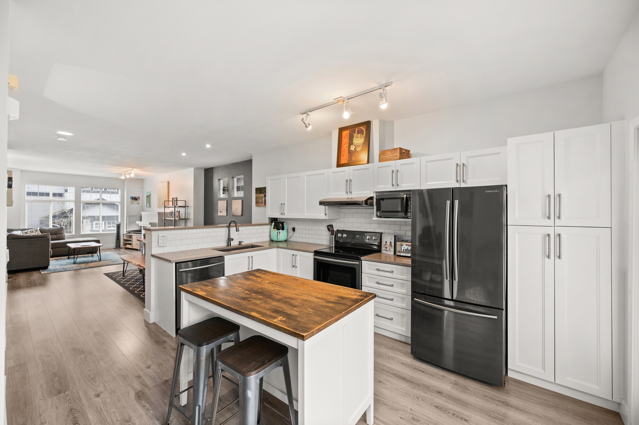 Welcome to your new home at Starpoint in Clayton Heights. This beautiful family- friendly 1,555 sqft townhome with 3 bed/ 2 bath boasts an open and modern layout on the main floor, new flooring throughout and a cozy gas fireplace for relaxing nights at home. The bright renovated kitchen offers new appliances and ample of counter space + storage. Highlight of this home is the private fenced yard of the kitchen area. Enjoy your morning coffee in the sunshine or host a summer barbecue with friends. Upstairs you’ll find the primary bedroom with walk-in closet and ensuite. The other 2 bedrooms are great for kids, home office or guests. You’ll love the convenience of being just minutes away from schools, parks, shopping, restaurants and transit. Book your private showing today!