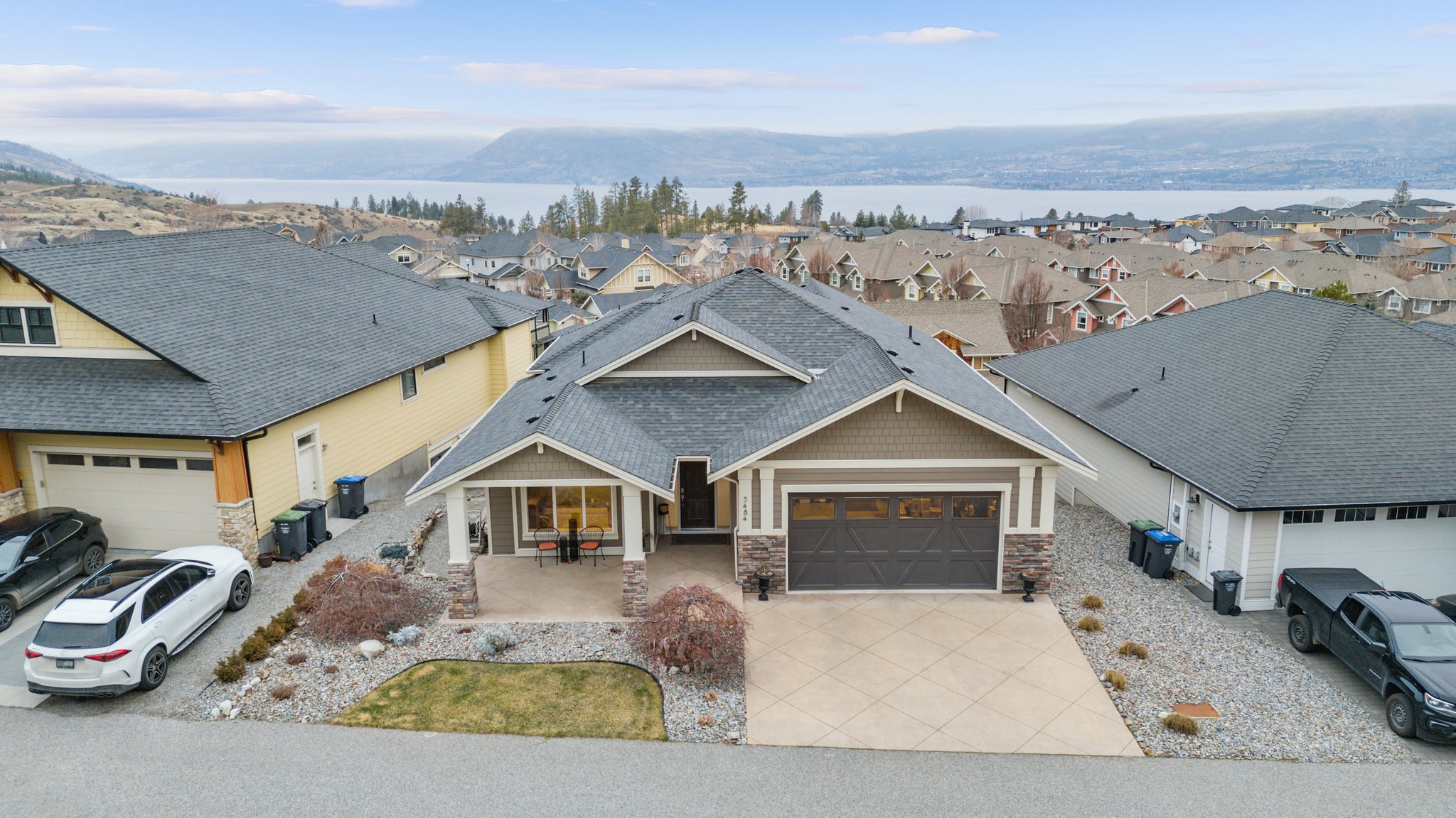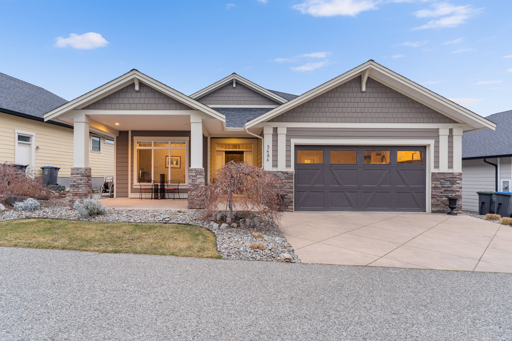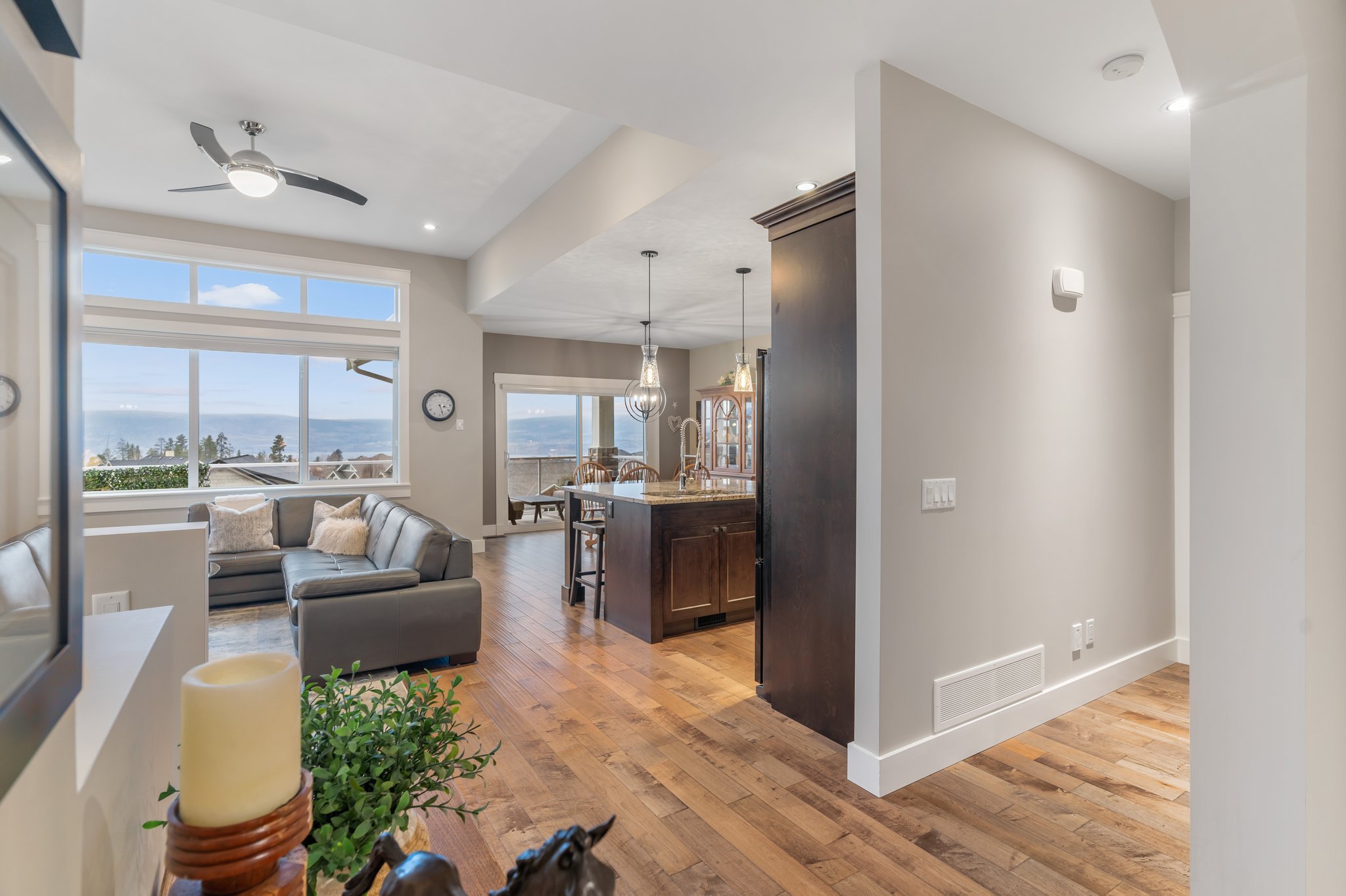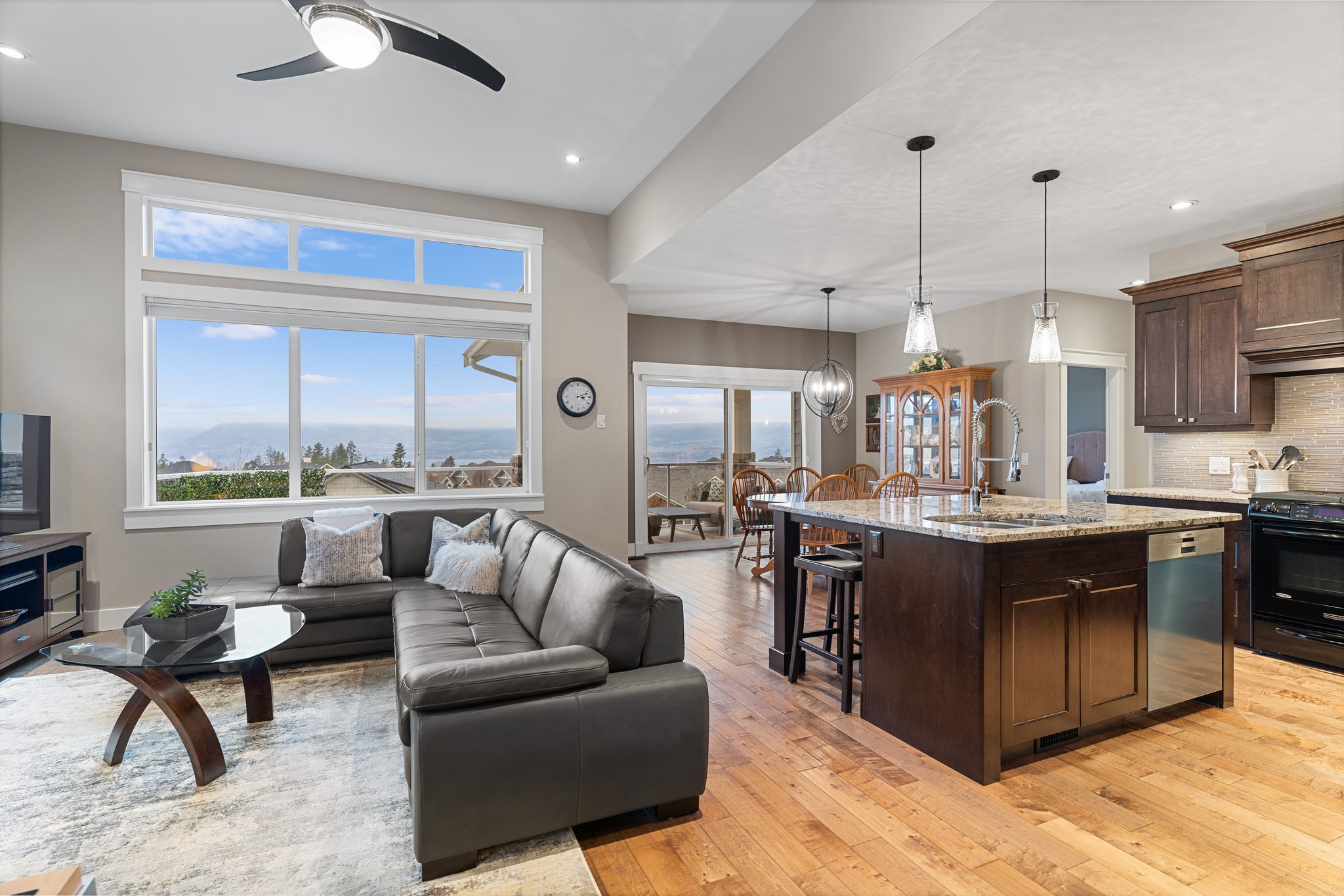 Surprisingly spectacular lake views from this impeccably maintained rancher with walk out basement. Located on a quiet and exclusive laneway in Kettle Valley. Over 2600 sf of upgraded finishes and thoughtful design in this perfect 4 bedroom (+ office) home. This home has been lovingly cared for and impeccably maintained. Enjoy gorgeous lake views from your primary bedroom, kitchen, great room and the spacious patio. No expenses were spared in the building or finishing of this home, from hardwood floors throughout both the upstairs and downstairs, designer blinds/window coverings, upgraded LED lighting to the granite countertops and full closet organizers. An entertainers dream home with an oversized patio off of the great room (to enjoy the lake views) as well as a gorgeous bar with wine fridge in the basement just off of the family room. This home is filled with natural light and enjoys a nice open floor plan. A stamped concrete driveway/front porch, 2 car garage, underground sprinklers with a low maintenance yard and a new A/C unit in 2025 help to round out this offering.