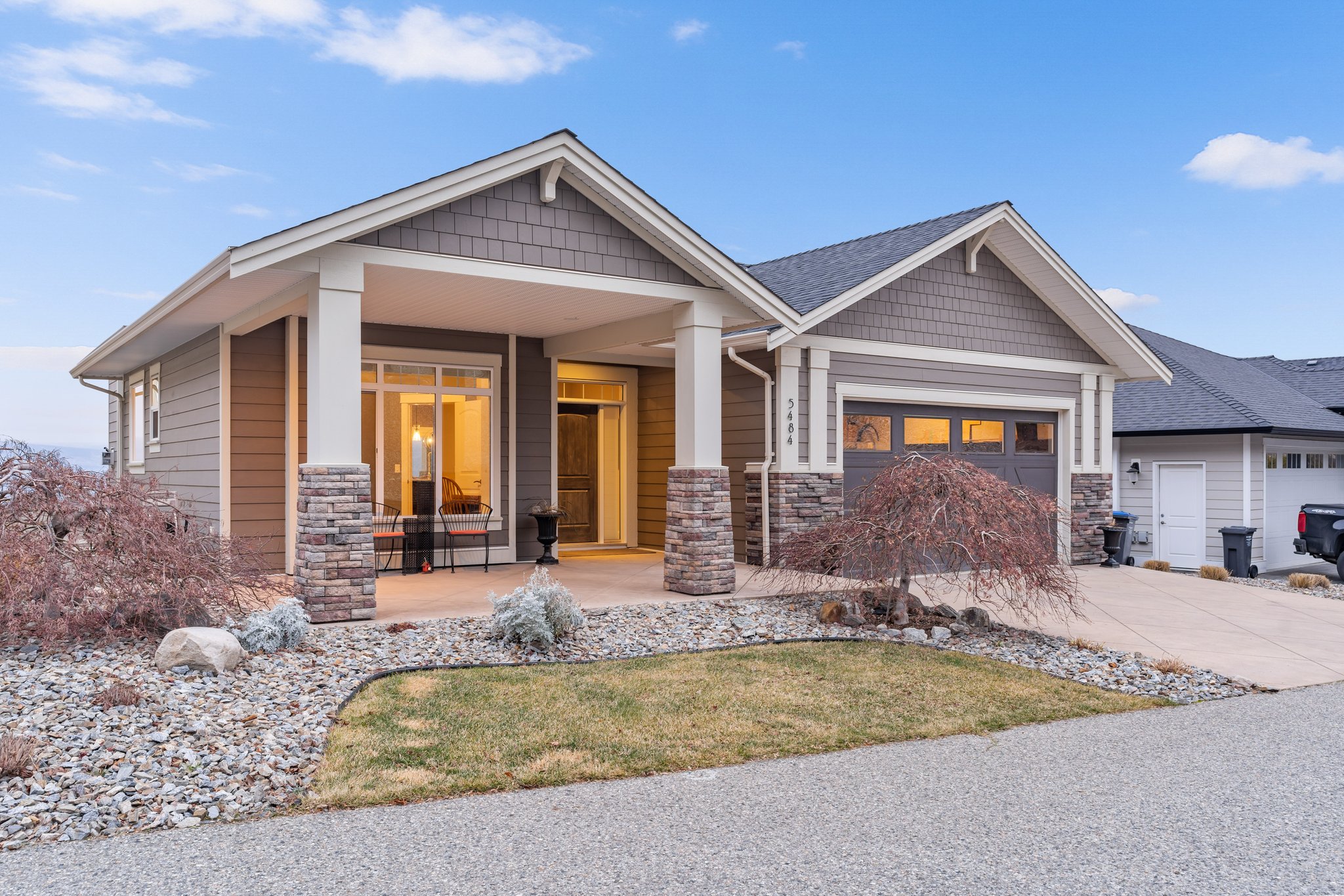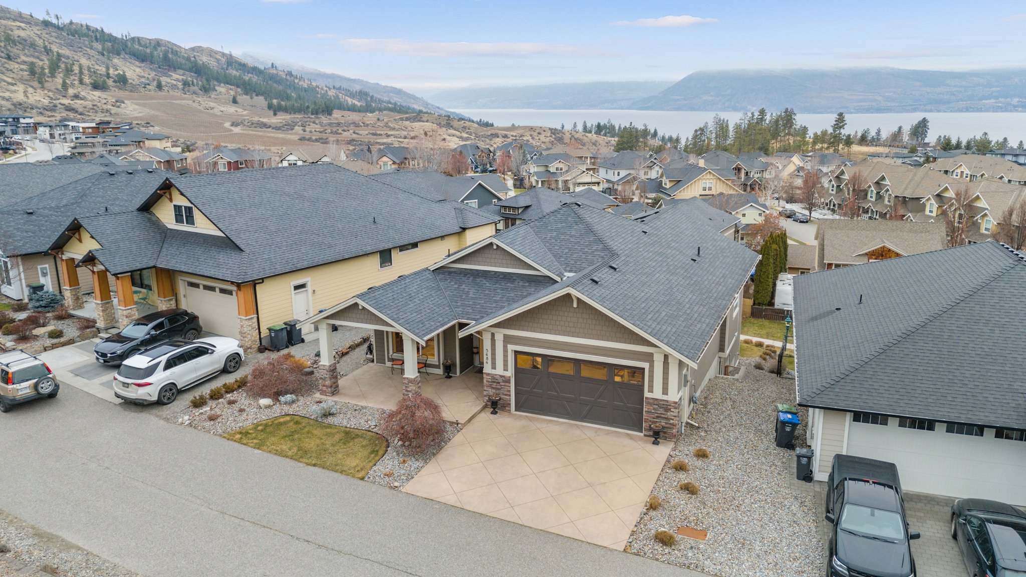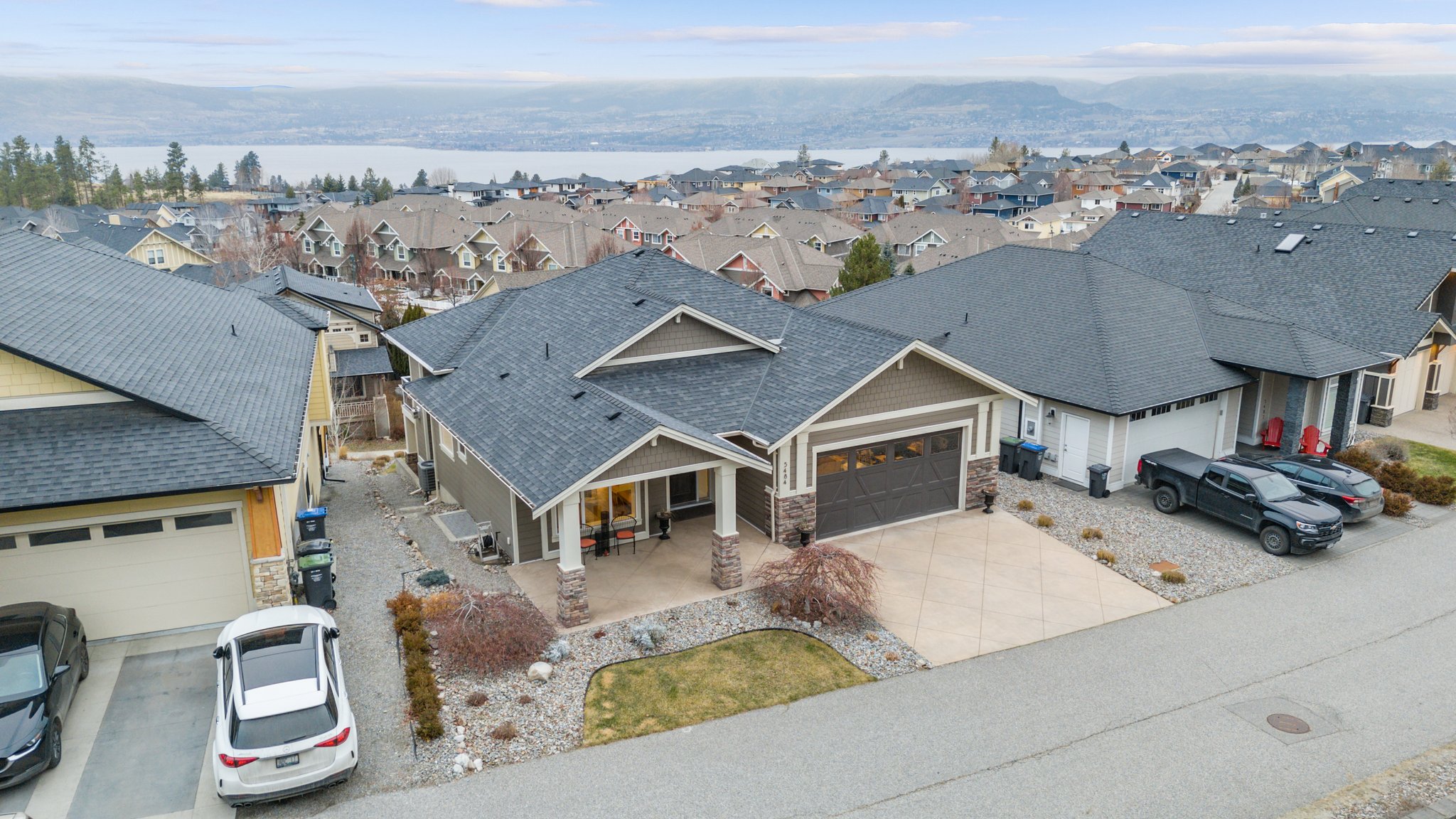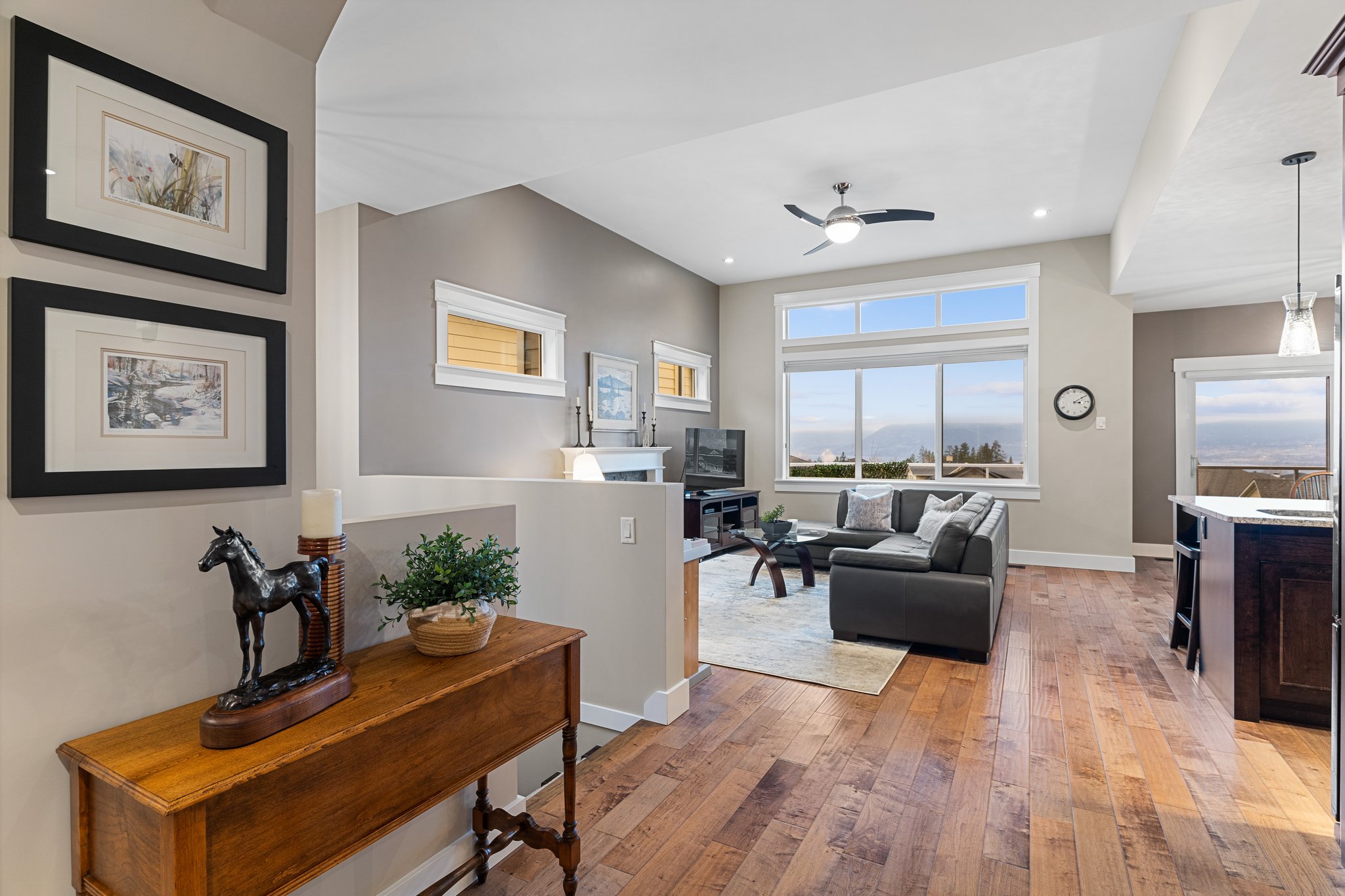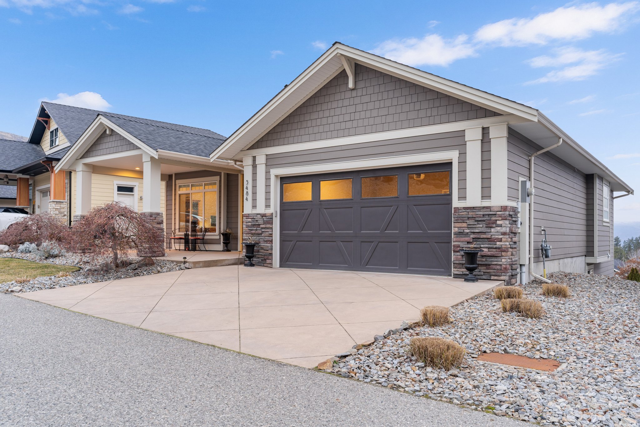 Surprisingly spectacular lake views from this impeccably maintained rancher with walk out basement. Located on a quiet and exclusive laneway in Kettle Valley. Over 2600 sf of upgraded finishes and thoughtful design in this perfect 4 bedroom (+ office) home. This home has been lovingly cared for and impeccably maintained. Enjoy gorgeous lake views from your primary bedroom, kitchen, great room and the spacious patio. No expenses were spared in the building or finishing of this home, from hardwood floors throughout both the upstairs and downstairs, designer blinds/window coverings, upgraded LED lighting to the granite countertops and full closet organizers. An entertainers dream home with an oversized patio off of the great room (to enjoy the lake views) as well as a gorgeous bar with wine fridge in the basement just off of the family room. This home is filled with natural light and enjoys a nice open floor plan. A stamped concrete driveway/front porch, 2 car garage, underground sprinklers with a low maintenance yard and a new A/C unit in 2025 help to round out this offering.
