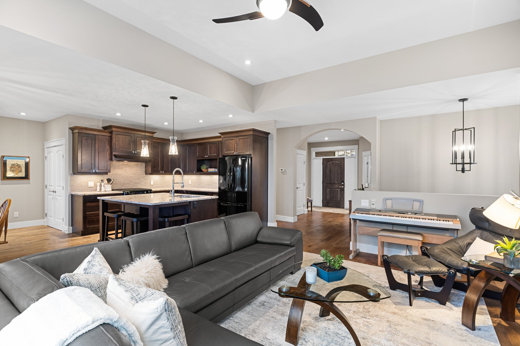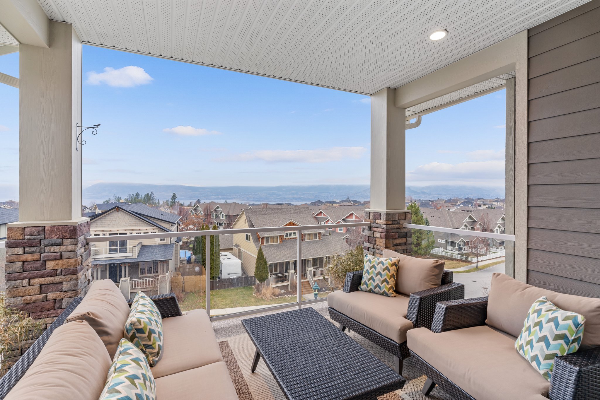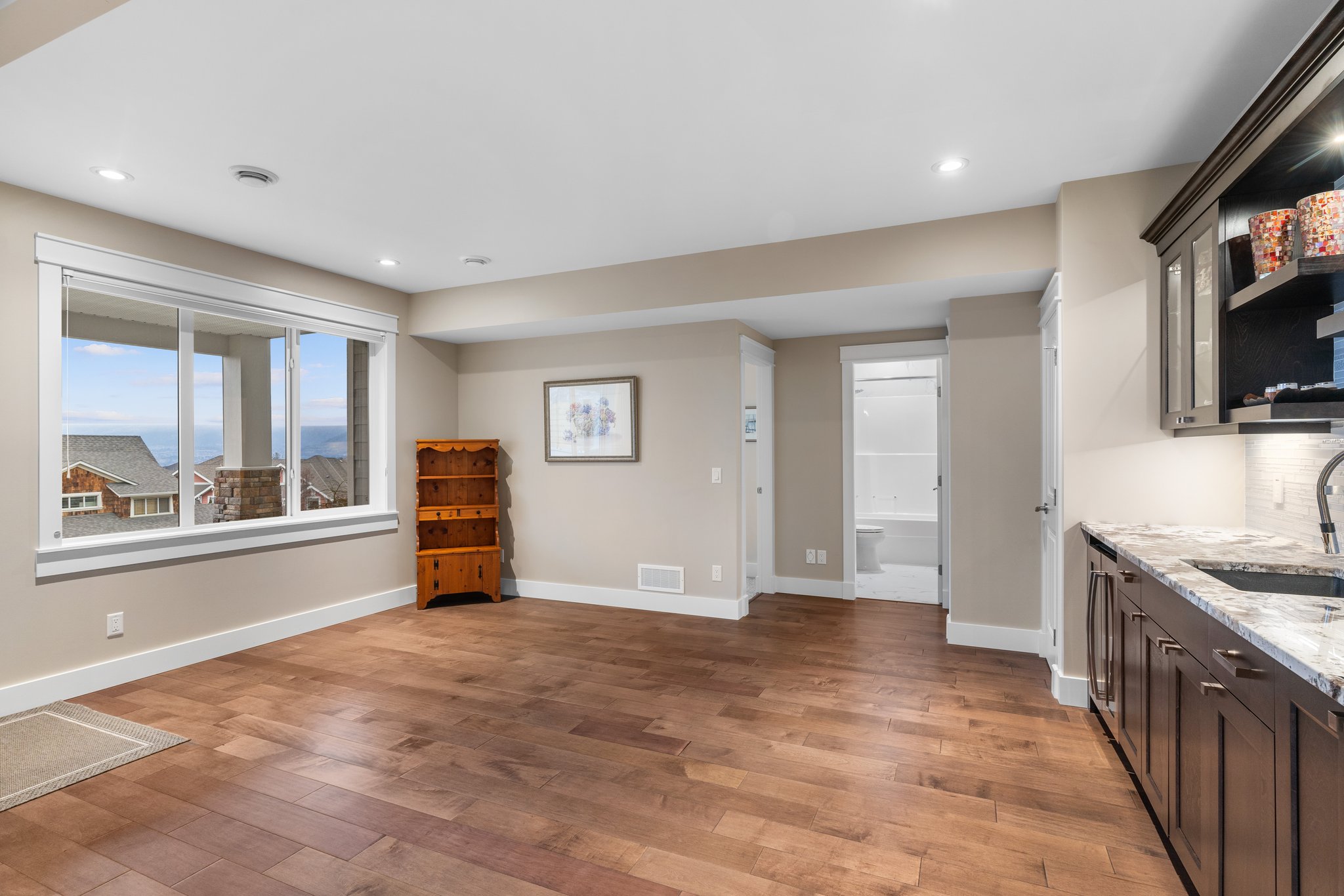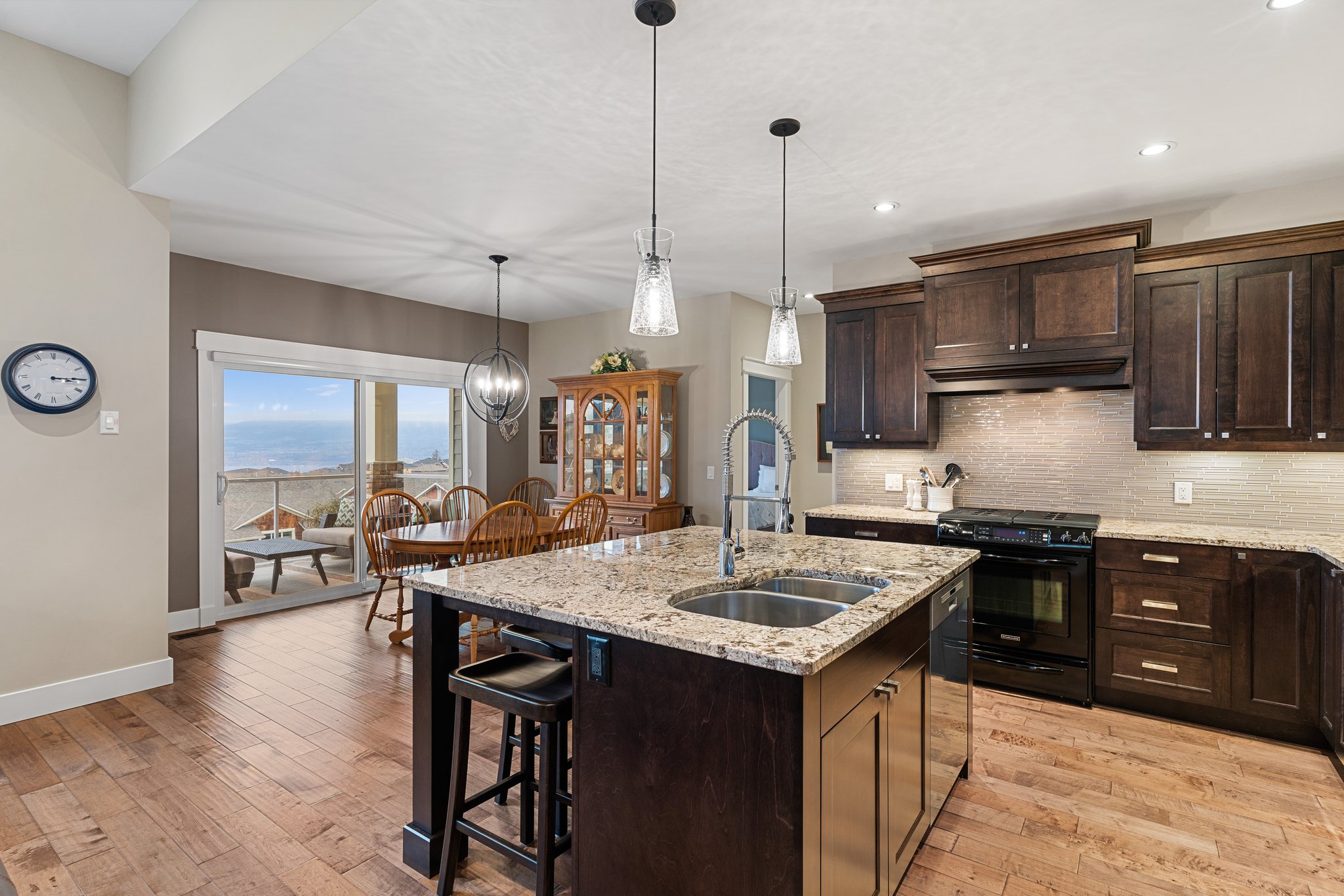 Surprisingly spectacular lake views from this impeccably maintained rancher with walk out basement. Located on a quiet and exclusive laneway in Kettle Valley. Over 2600 sf of upgraded finishes and thoughtful design in this perfect 4 bedroom (+ office) home. This home has been lovingly cared for and impeccably maintained. Enjoy gorgeous lake views from your primary bedroom, kitchen, great room and the spacious patio. No expenses were spared in the building or finishing of this home, from hardwood floors throughout both the upstairs and downstairs, designer blinds/window coverings, upgraded LED lighting to the granite countertops and full closet organizers. An entertainers dream home with an oversized patio off of the great room (to enjoy the lake views) as well as a gorgeous bar with wine fridge in the basement just off of the family room. This home is filled with natural light and enjoys a nice open floor plan. A stamped concrete driveway/front porch, 2 car garage, underground sprinklers with a low maintenance yard and a new A/C unit in 2025 help to round out this offering.