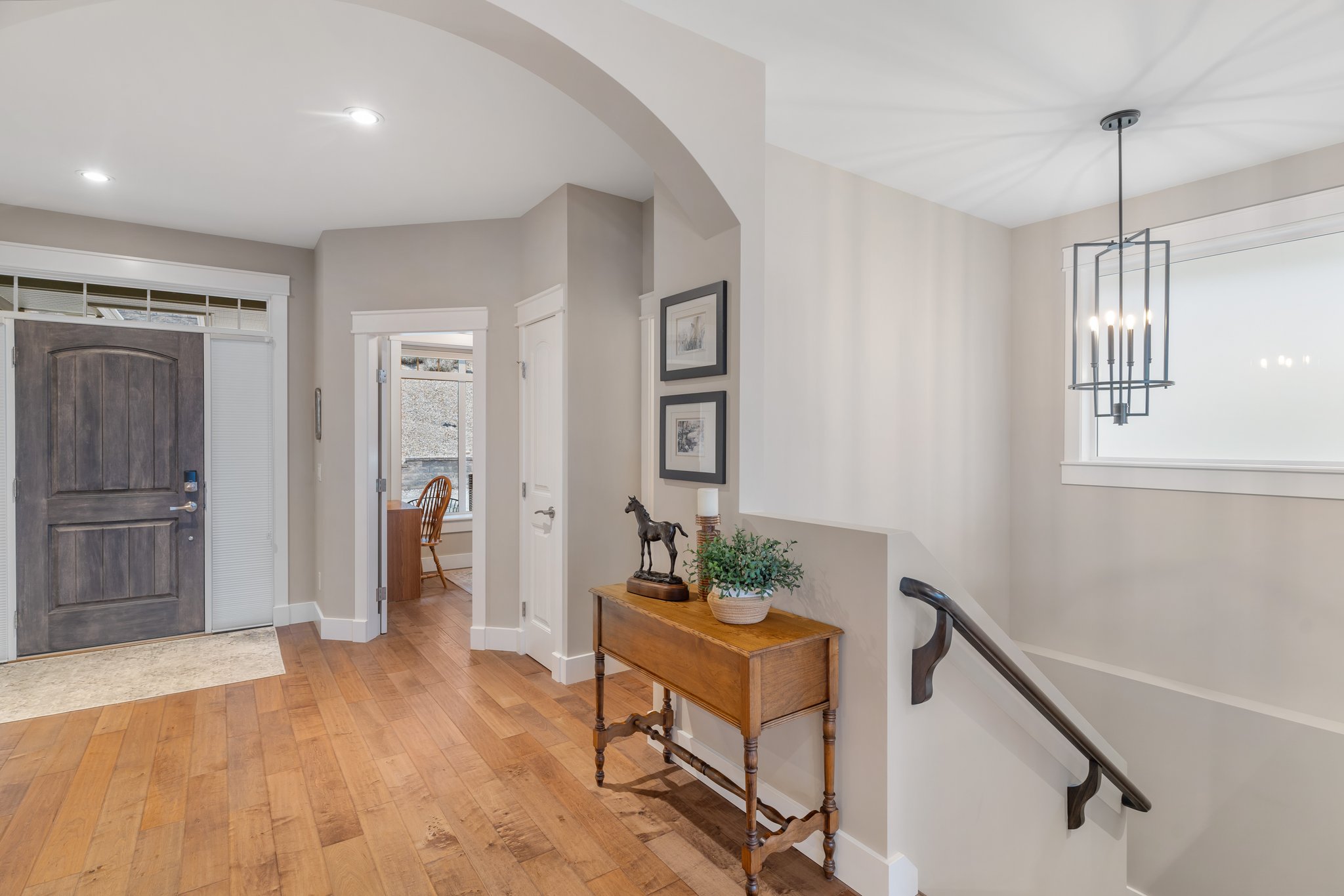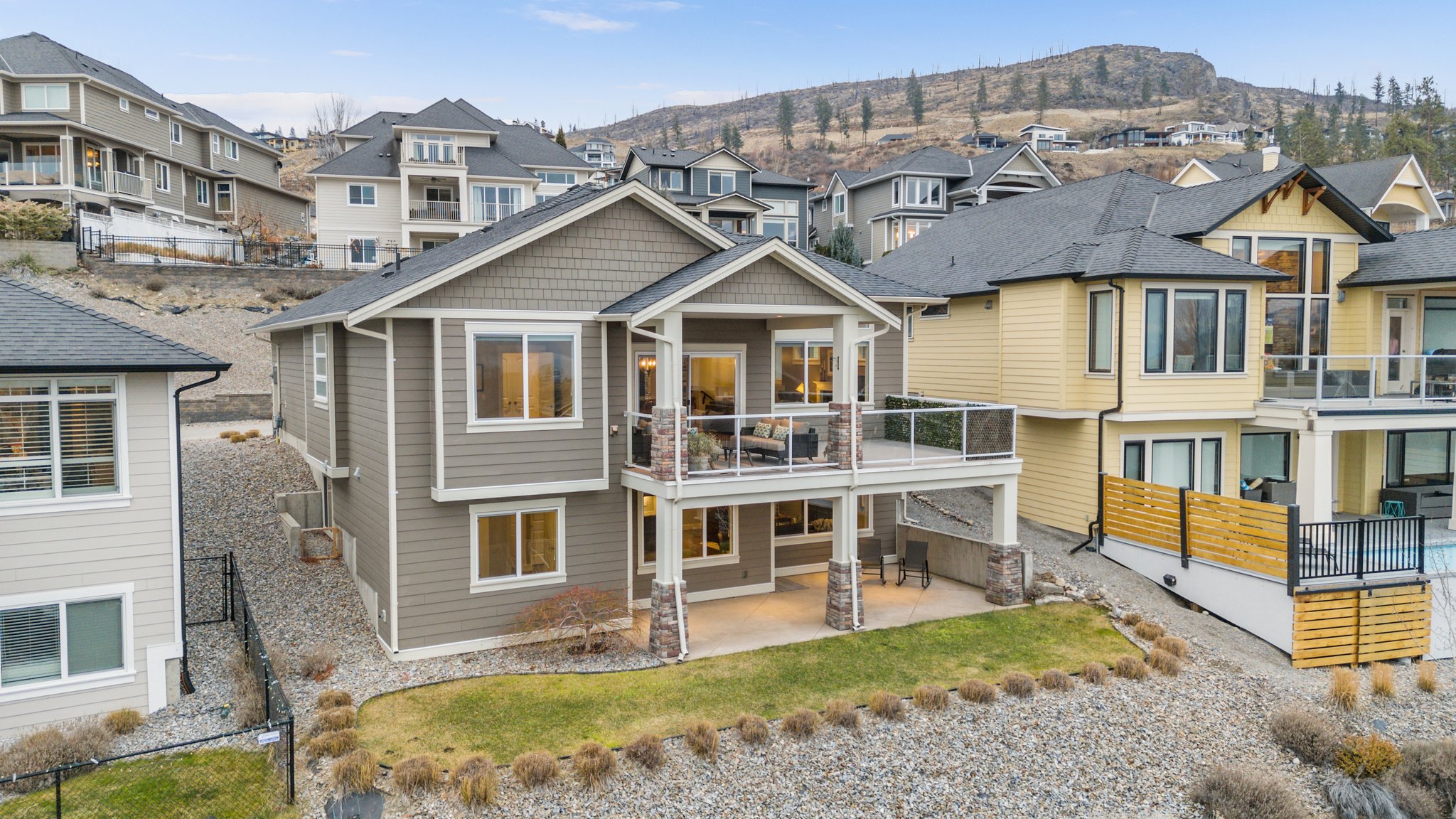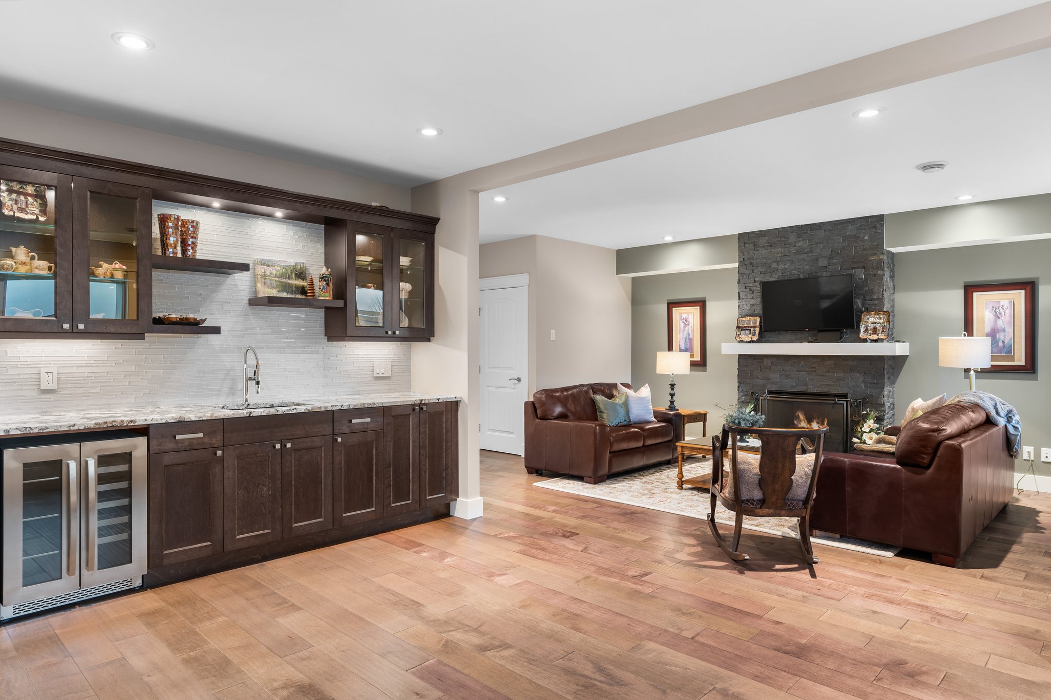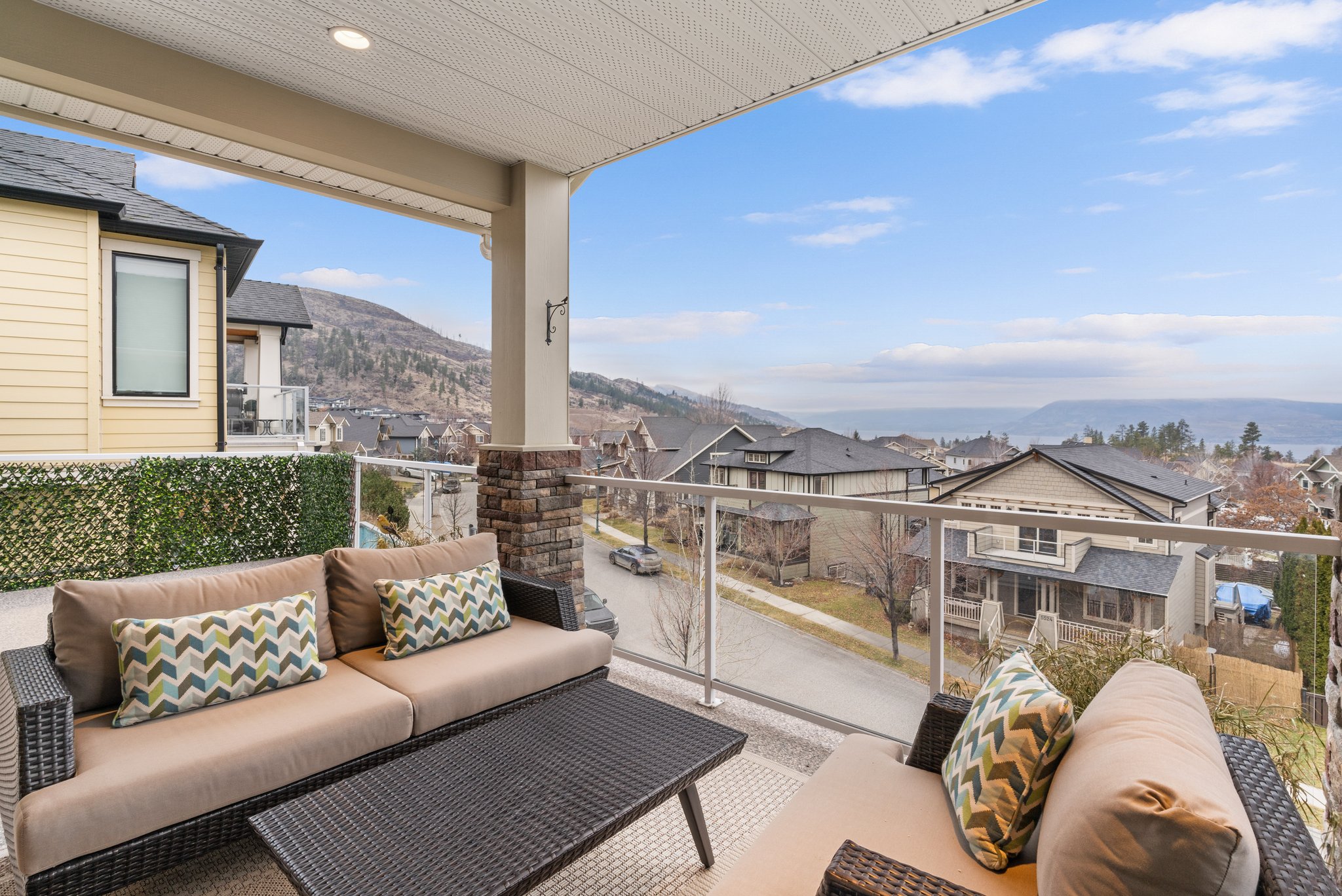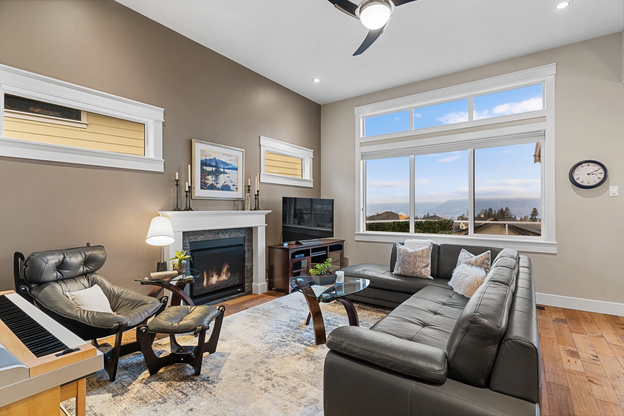 Surprisingly spectacular lake views from this impeccably maintained rancher with walk out basement. Located on a quiet and exclusive laneway in Kettle Valley. Over 2600 sf of upgraded finishes and thoughtful design in this perfect 4 bedroom (+ office) home. This home has been lovingly cared for and impeccably maintained. Enjoy gorgeous lake views from your primary bedroom, kitchen, great room and the spacious patio. No expenses were spared in the building or finishing of this home, from hardwood floors throughout both the upstairs and downstairs, designer blinds/window coverings, upgraded LED lighting to the granite countertops and full closet organizers. An entertainers dream home with an oversized patio off of the great room (to enjoy the lake views) as well as a gorgeous bar with wine fridge in the basement just off of the family room. This home is filled with natural light and enjoys a nice open floor plan. A stamped concrete driveway/front porch, 2 car garage, underground sprinklers with a low maintenance yard and a new A/C unit in 2025 help to round out this offering.