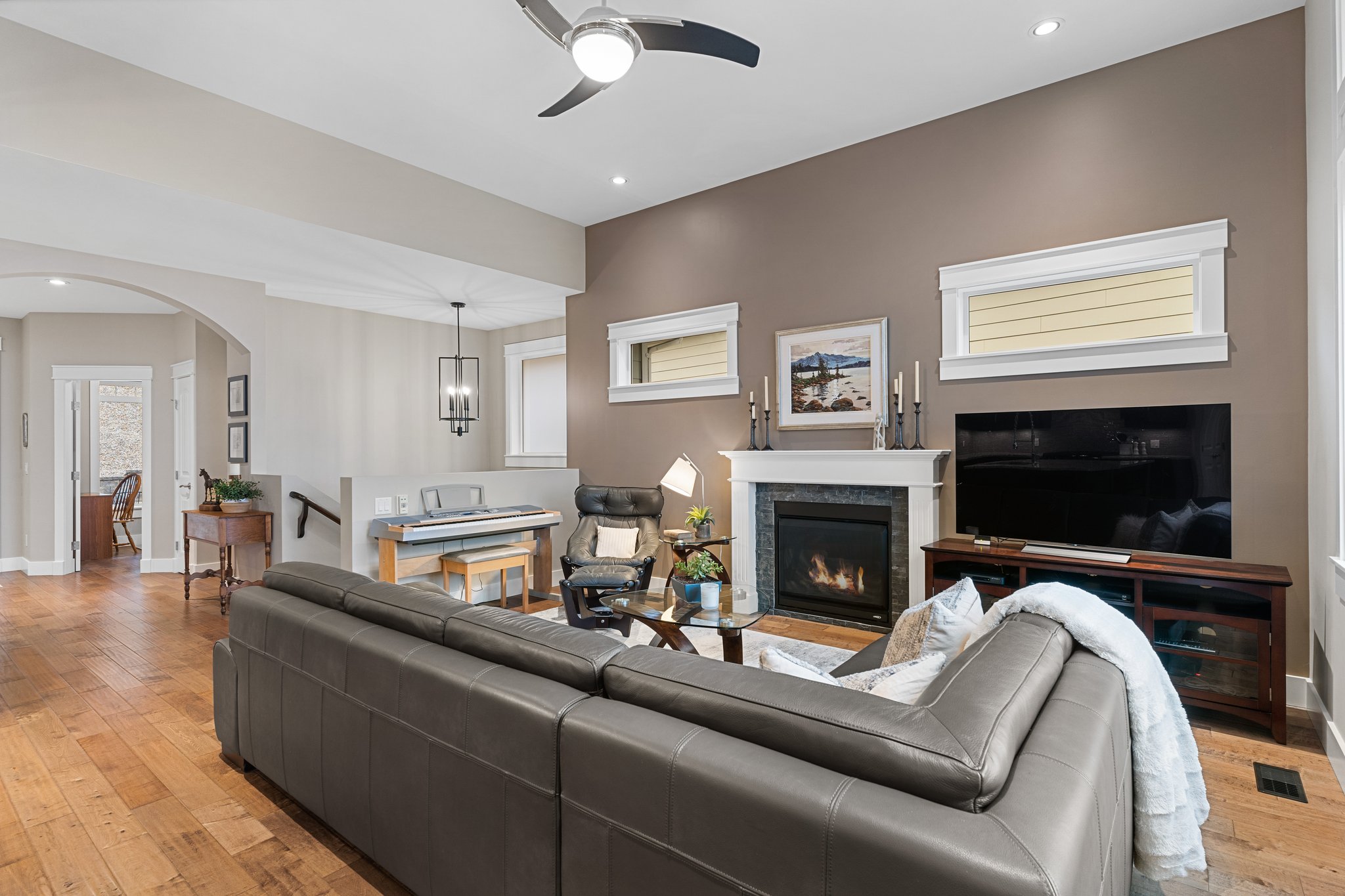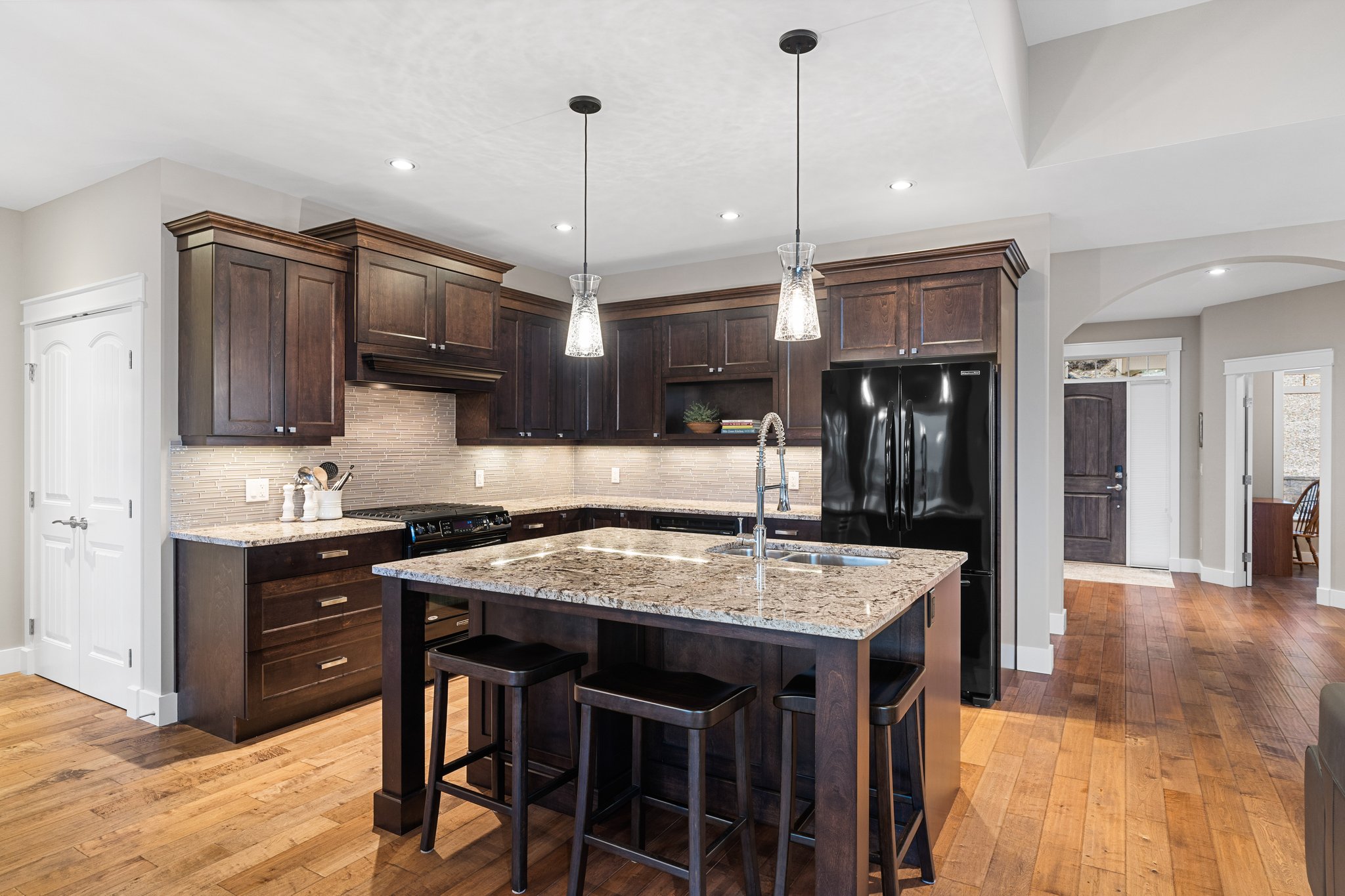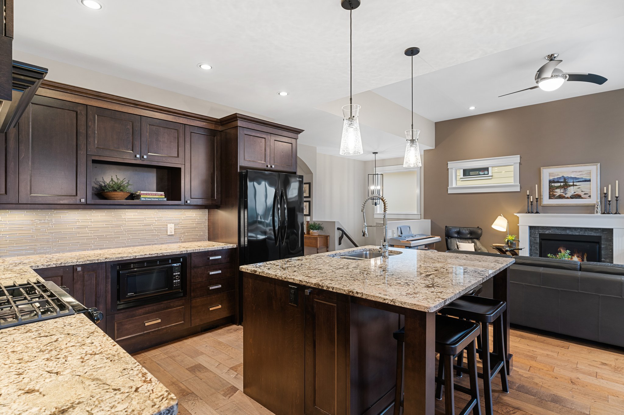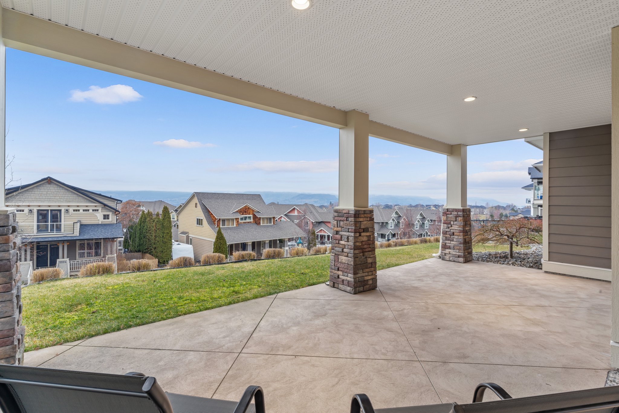 Surprisingly spectacular lake views from this impeccably maintained rancher with walk out basement. Located on a quiet and exclusive laneway in Kettle Valley. Over 2600 sf of upgraded finishes and thoughtful design in this perfect 4 bedroom (+ office) home. This home has been lovingly cared for and impeccably maintained. Enjoy gorgeous lake views from your primary bedroom, kitchen, great room and the spacious patio. No expenses were spared in the building or finishing of this home, from hardwood floors throughout both the upstairs and downstairs, designer blinds/window coverings, upgraded LED lighting to the granite countertops and full closet organizers. An entertainers dream home with an oversized patio off of the great room (to enjoy the lake views) as well as a gorgeous bar with wine fridge in the basement just off of the family room. This home is filled with natural light and enjoys a nice open floor plan. A stamped concrete driveway/front porch, 2 car garage, underground sprinklers with a low maintenance yard and a new A/C unit in 2025 help to round out this offering.