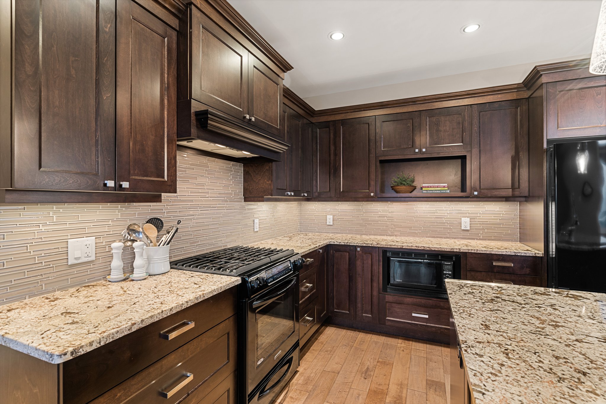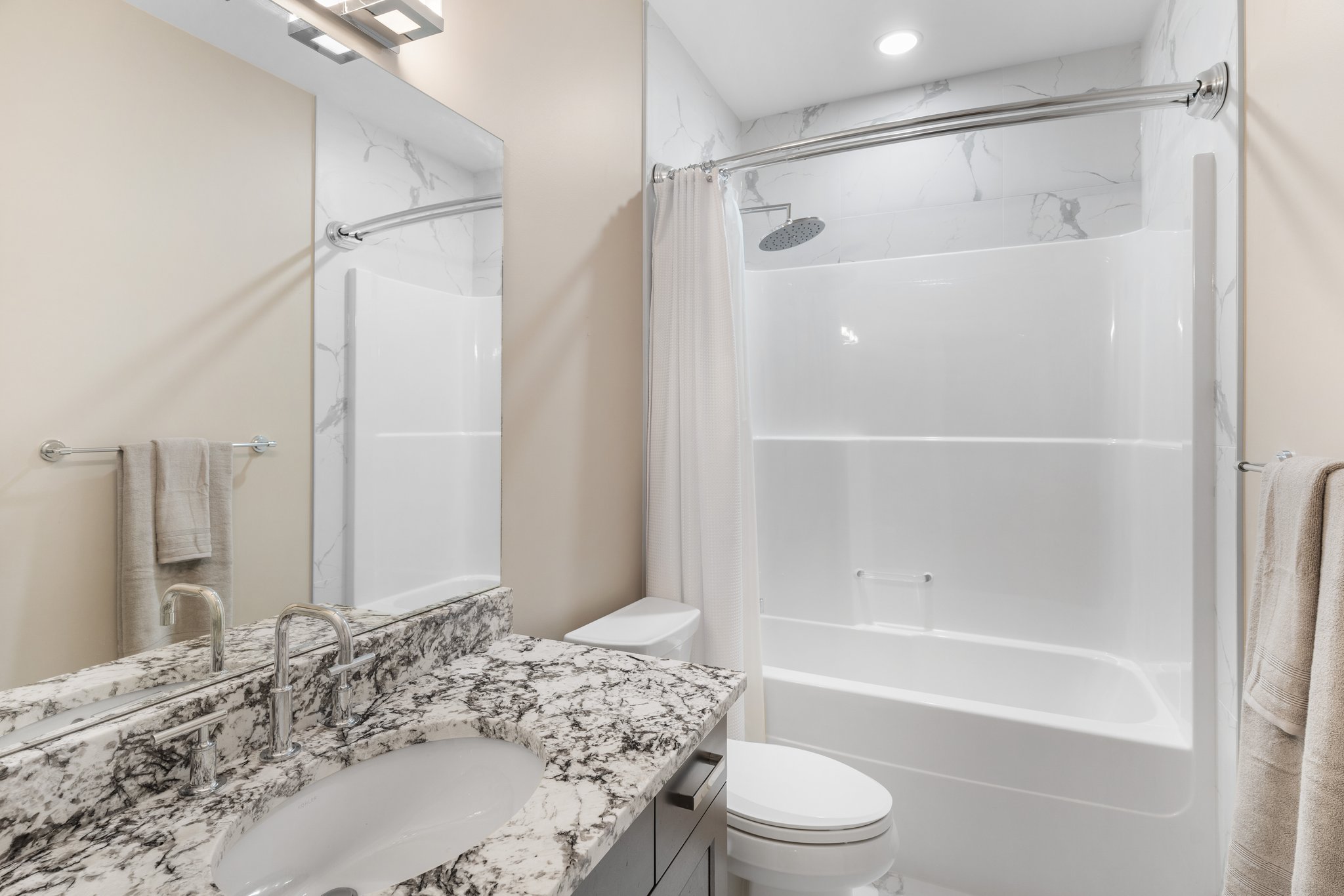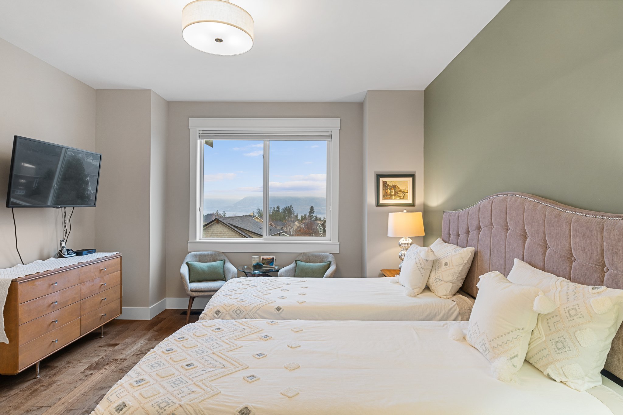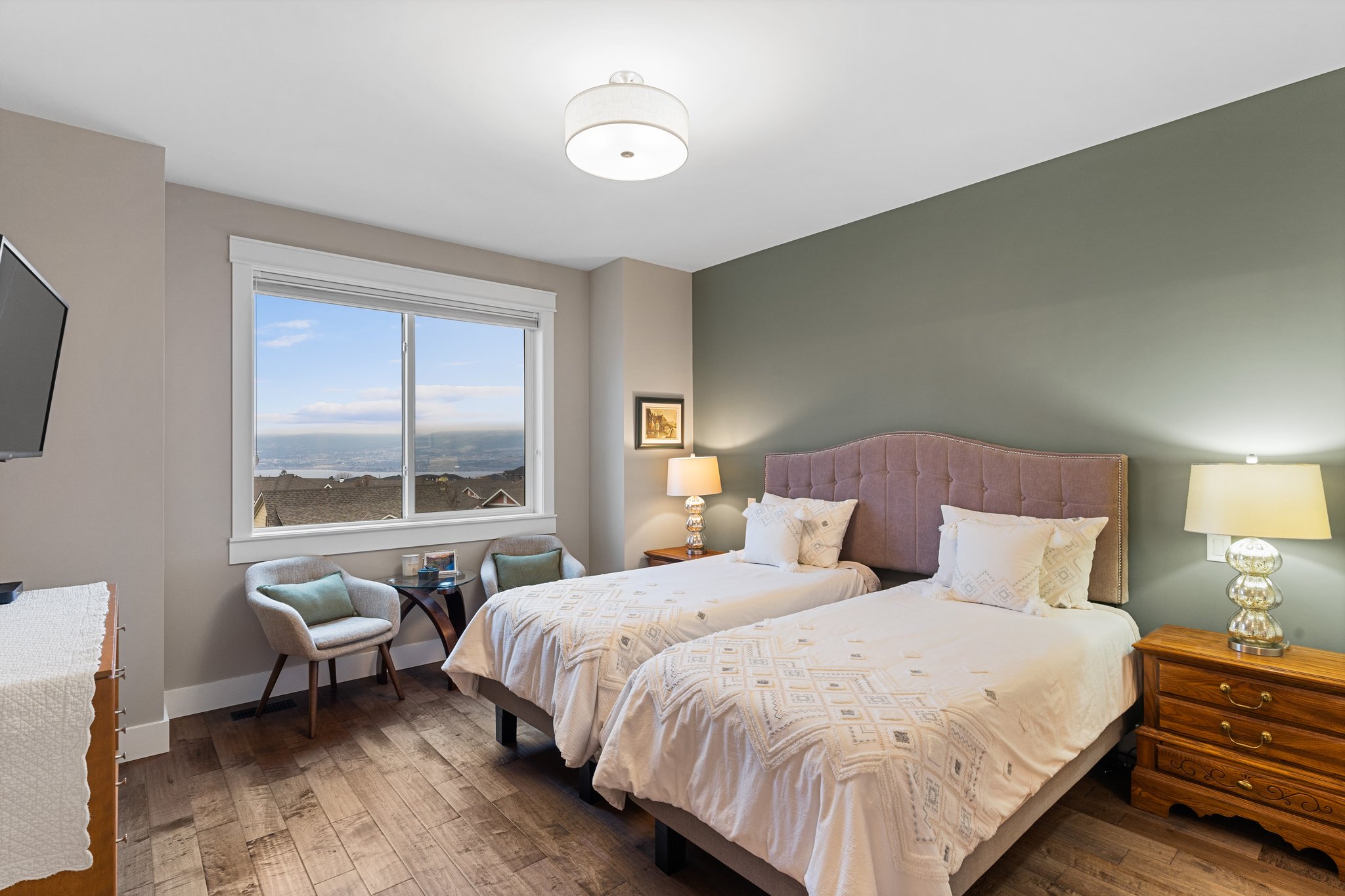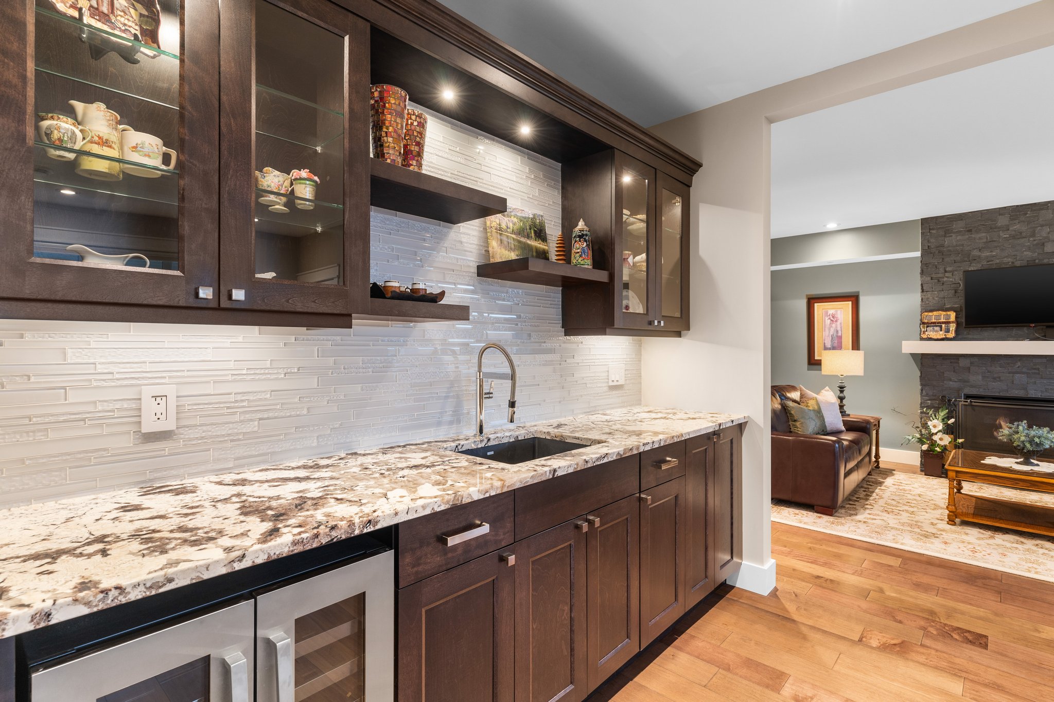 Surprisingly spectacular lake views from this impeccably maintained rancher with walk out basement. Located on a quiet and exclusive laneway in Kettle Valley. Over 2600 sf of upgraded finishes and thoughtful design in this perfect 4 bedroom (+ office) home. This home has been lovingly cared for and impeccably maintained. Enjoy gorgeous lake views from your primary bedroom, kitchen, great room and the spacious patio. No expenses were spared in the building or finishing of this home, from hardwood floors throughout both the upstairs and downstairs, designer blinds/window coverings, upgraded LED lighting to the granite countertops and full closet organizers. An entertainers dream home with an oversized patio off of the great room (to enjoy the lake views) as well as a gorgeous bar with wine fridge in the basement just off of the family room. This home is filled with natural light and enjoys a nice open floor plan. A stamped concrete driveway/front porch, 2 car garage, underground sprinklers with a low maintenance yard and a new A/C unit in 2025 help to round out this offering.