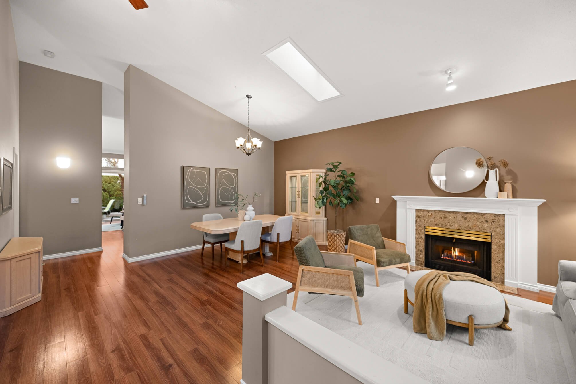 Welcome to Queen Anne Green, a 55+ community in the heart of Walnut Grove! This rancher-style townhome features 1,568 sqft of living space, offering a comfortable and spacious layout. Step into the dining room with a cozy gas fireplace, leading to a bright living room with vaulted ceilings for an open, airy feel. The kitchen and family room/eating area flow seamlessly, with access to a private backyard and patio. The main floor includes a primary bedroom with a walk-in closet and 5-piece ensuite, plus a second bedroom that can be used as an office and a 3-piece bath. Upstairs, a third bedroom is perfect for guests! Enjoy a double garage, fantastic amenities, a gated community, and plenty of visitor parking. Walking distance to shopping, restaurants, transit, and easy access to Highway 1!
