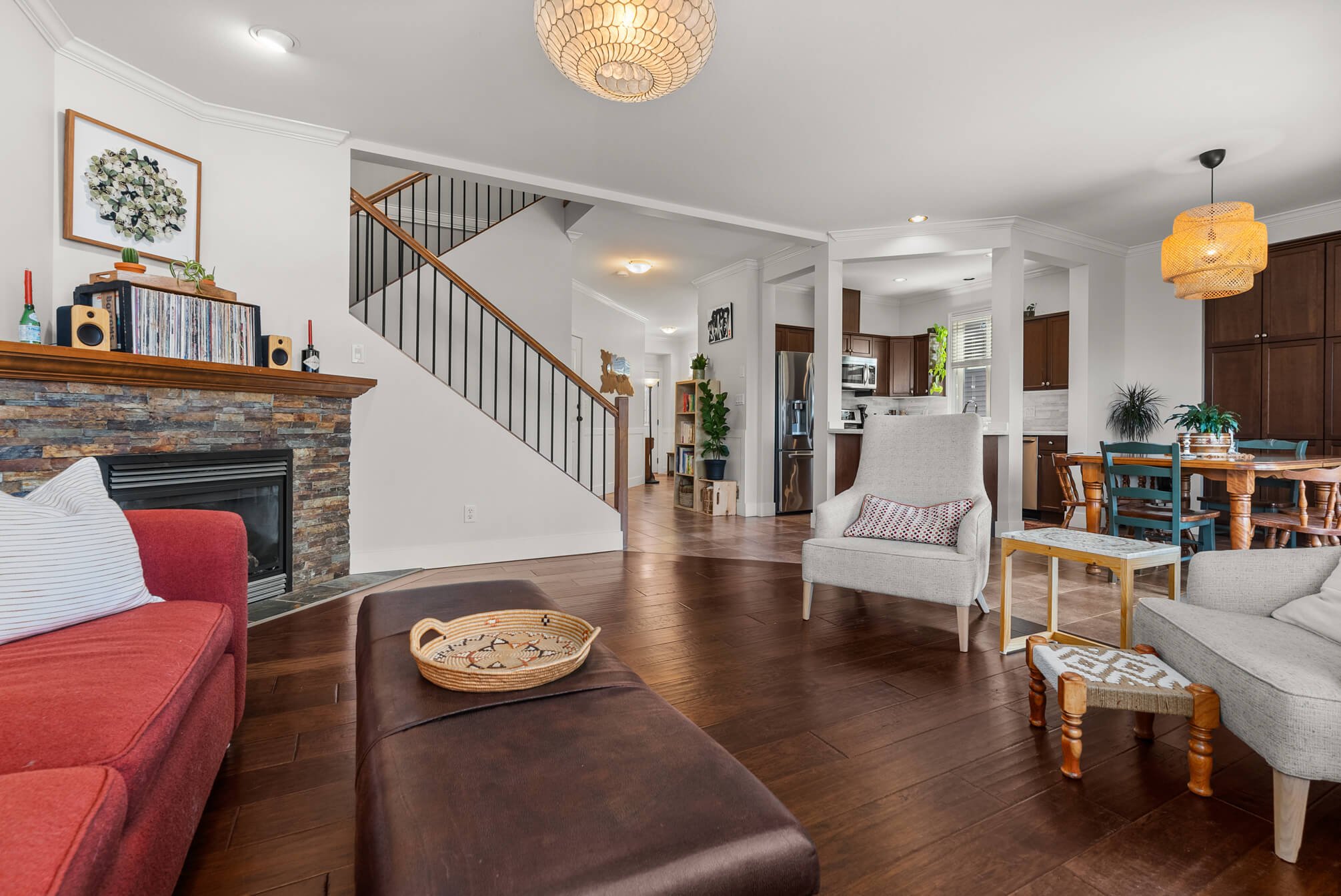 Welcome to this beautiful and bright end unit at Cedar Springs on Promontory! This spacious & well maintained home offers an open living concept that extends to a private deck and large fenced yard. Updated kitchen with quartz counters, newer s/s appliances incl. a gas stove, built in pantry, separate dining area and living room w/ gas fireplace and large windows. The upper floor has 3 good sized bedrooms incl a huge primary bedroom w/ walk-in closet and ensuite; as well as a laundry room. Downstairs you have a large rec room, a bedroom that is great for teenagers or guests, 2 piece bathroom and storage room! Double SxS garage with room for 2 cars in the driveway. This one has it all – including central A/C, California shutters, new paint and much more. Call today for your private showing!