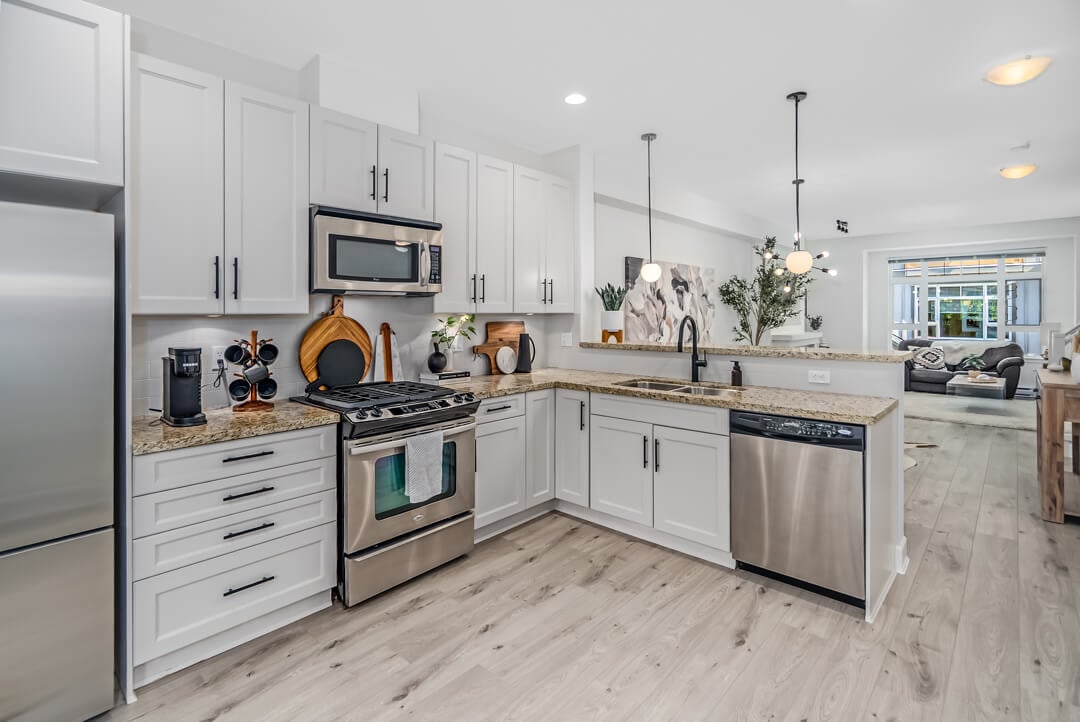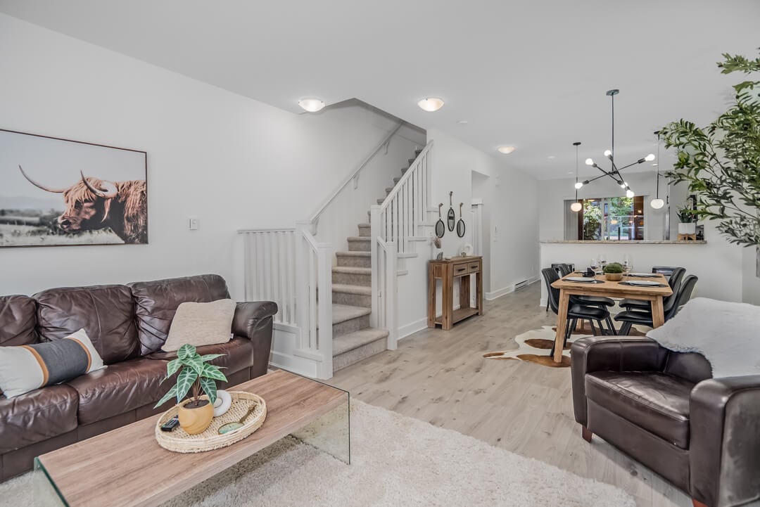 Nothing to do but move in! Welcome to ENCLAVE, a beautifully updated 2 bed, 2 bath townhome in the heart of South Surrey’s sought-after Grandview/Morgan Heights. This stylish home features a bright, open-concept main floor with a spacious kitchen, dining, and living area that walks out to a private patio. The kitchen boasts freshly painted cabinets, a new backsplash, granite counters, stainless steel appliances, and a gas range. New carpets, fresh paint, updated lighting, and plumbing throughout. Enjoy a massive tandem garage with tons of storage. Amenities include a gym, clubhouse, pool table, and playground. Walk to shops, schools, parks, and transit—this one checks all the boxes! Open House Sat. June 14th 2-4 PM & Sun. June 15th 1-3 PM