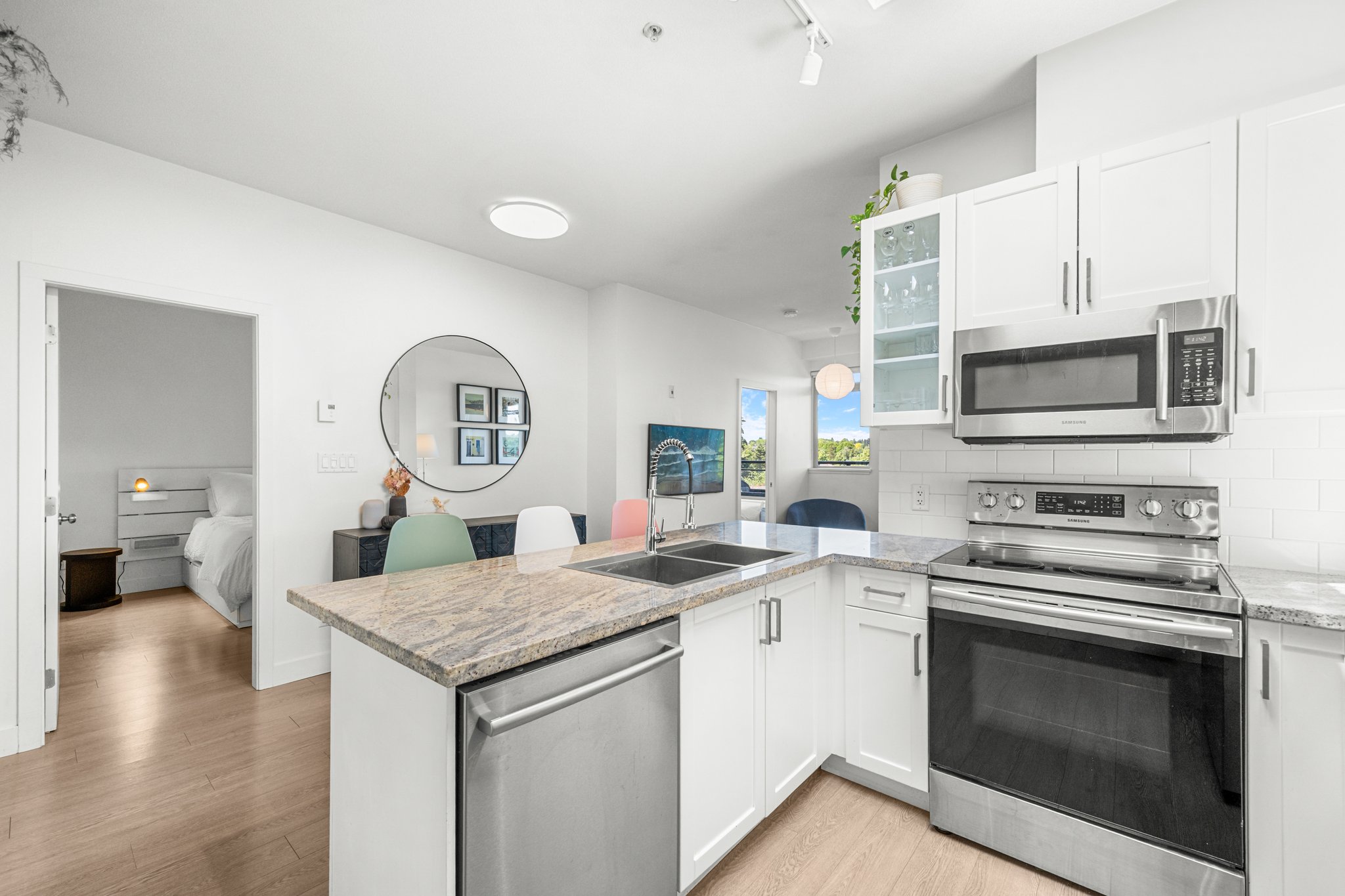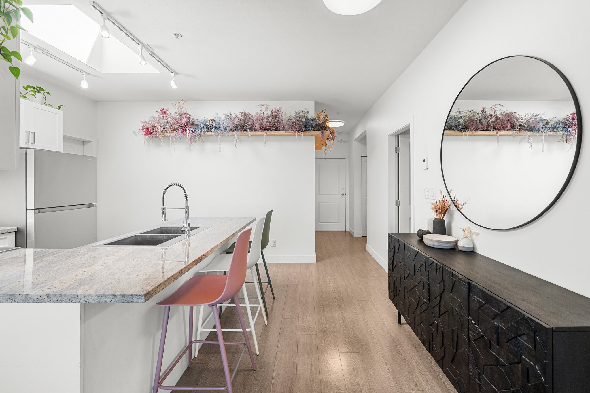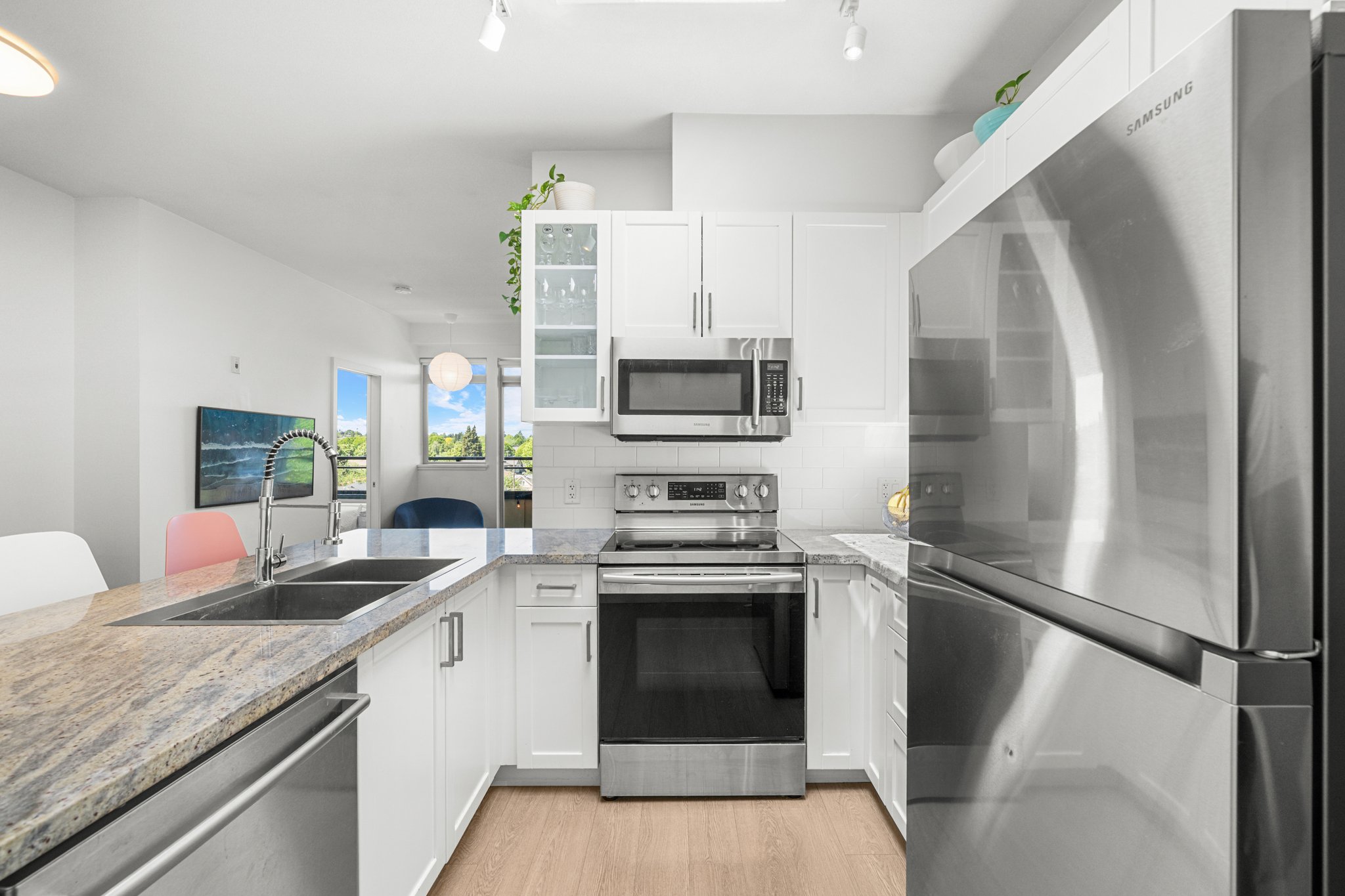 PENTHOUSE PERFECTION IN FRASER! Bright, airy 2 bed + 1 bath top-floor home in one of Vancouver’s most vibrant neighbourhoods and on the quiet side of the building! Enjoy higher ceilings, huge west-facing windows, and a private balcony with stunning mountain & sunset views. The kitchen features a skylight, granite counters, and stainless appliances. Spacious primary bedroom with walk-in closet & access to a spa-inspired bath with deep soaker tub. The second bedroom is perfect for a nursery, guest room, or home office. Located in a boutique, well-managed building just steps to Fraser & Mount Pleasant’s best cafes, shops & eats. Pet Friendly!1 secure parking space included. This is penthouse living at its best—book your showing today! Open House Saturday(14) / Sunday(15): 1-3pm!